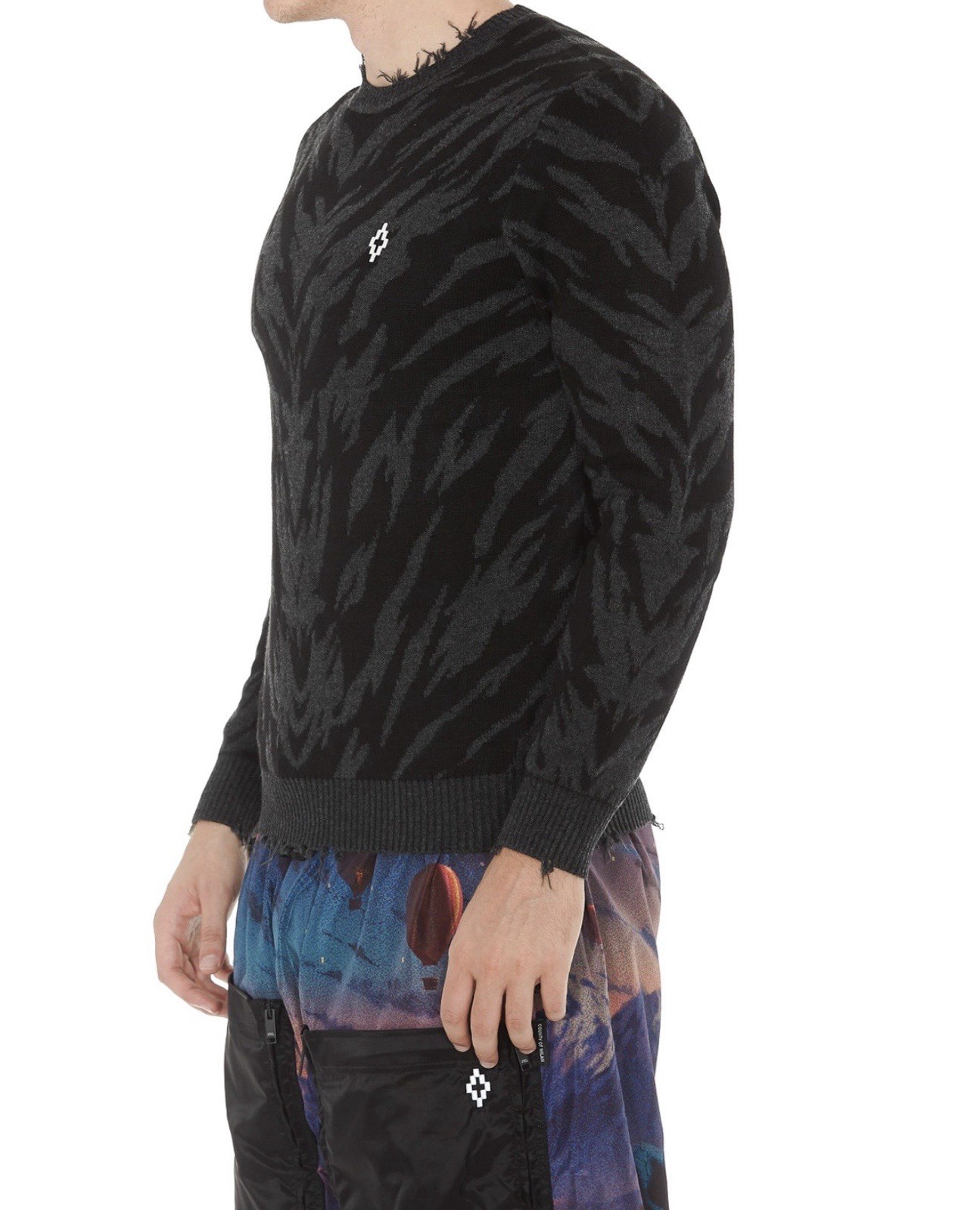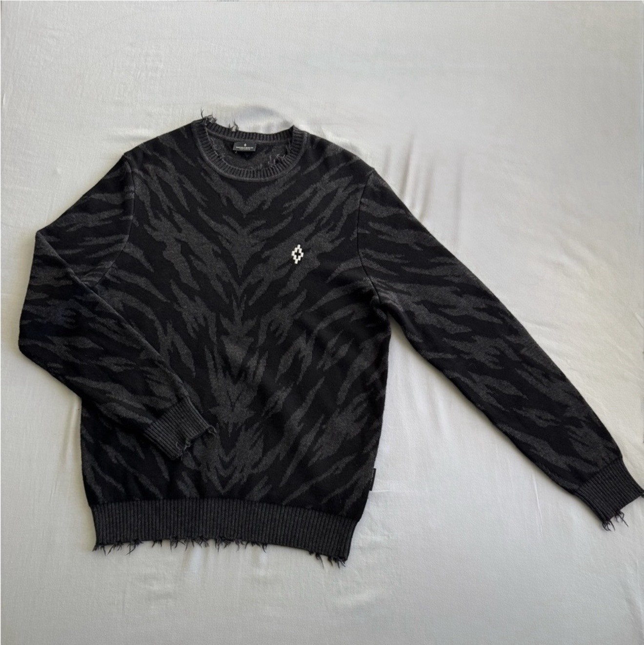 Marcelo Burlon Men s S Black Animal Print Crewneck Sweater NWOT Frayed Trims