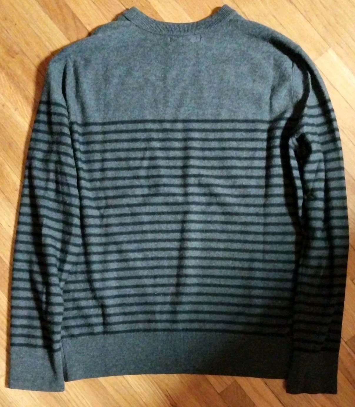 как выглядит BANANA REPUBLIC Extra Fine Merino Wool Sweater Mens L Gray Striped Long Sleeve фото