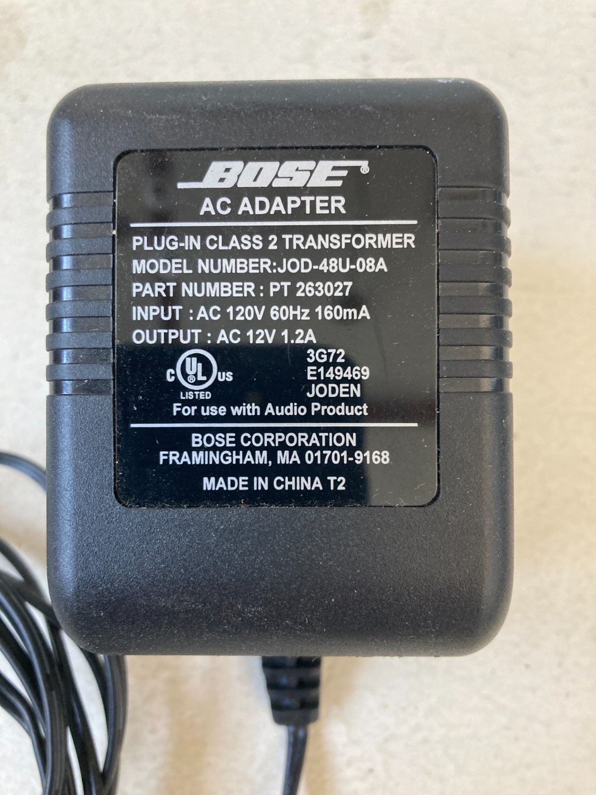 Bose AC Adapter JOD-48U-08A 12V/1.2A Part 263027 Companion 2 Power Supply OEM