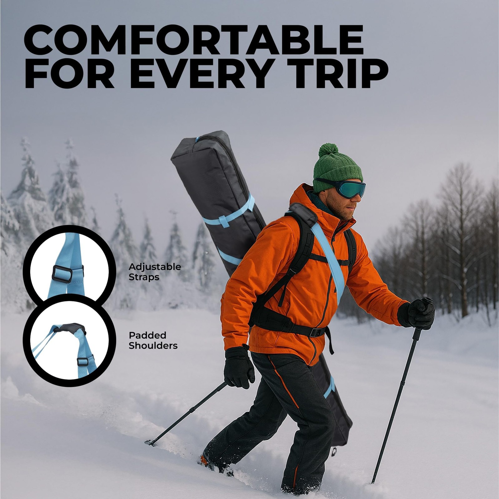 Tough Outfitters Ski Bag for Men and Women - Ski Bag for 1 Pair of Skis and P...