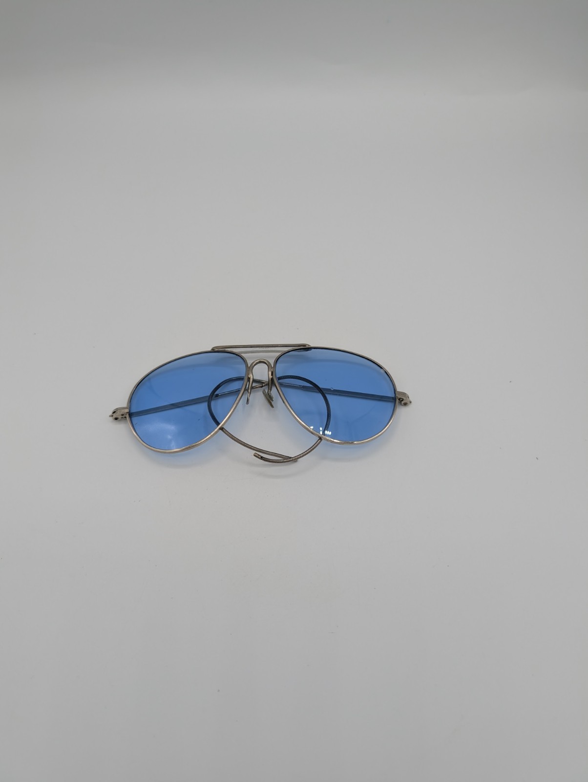 как выглядит Vintage Pair Silver Frame Aviator Style Sunglasses Blue Lense Curved Cable READ фото
