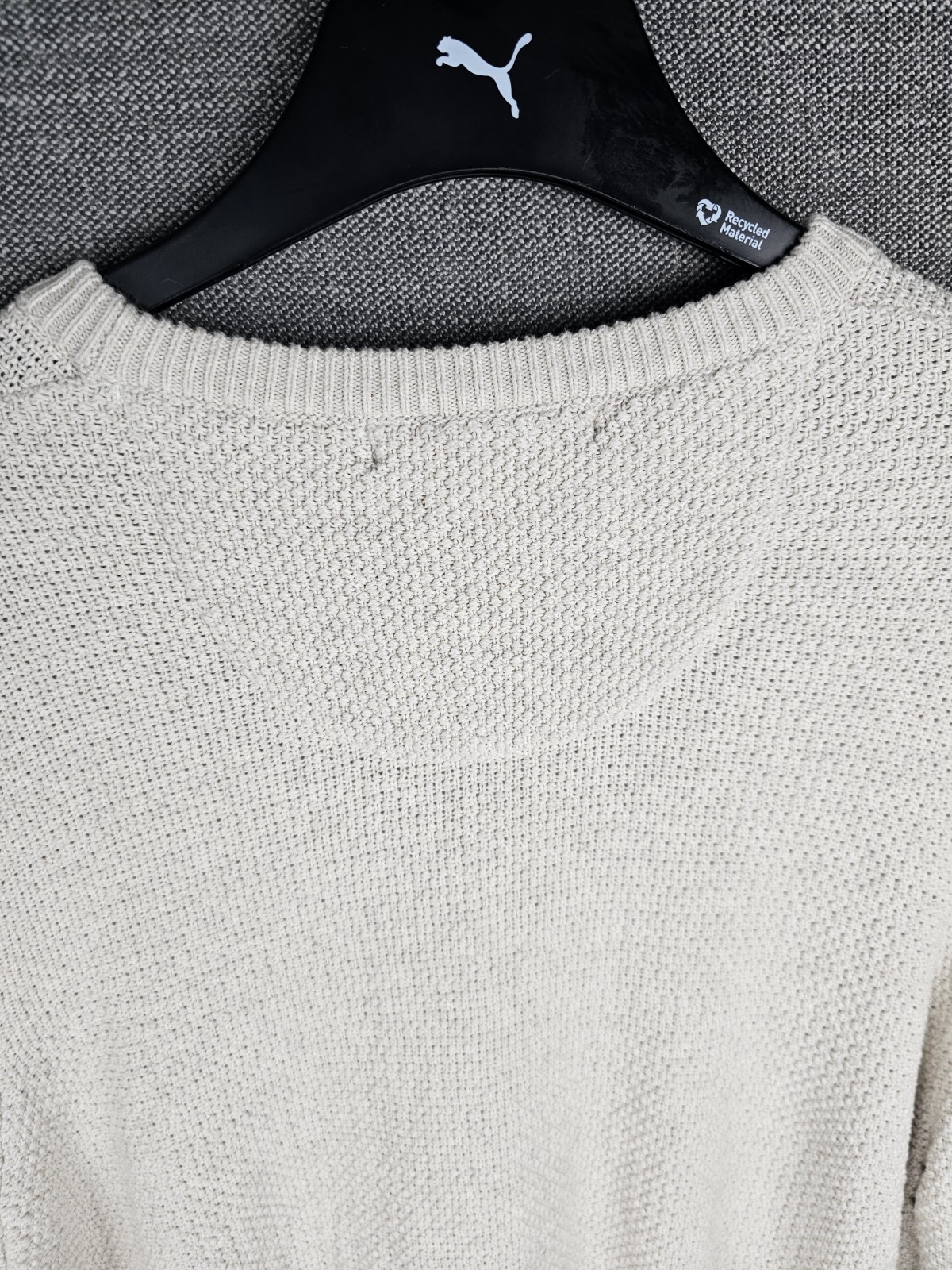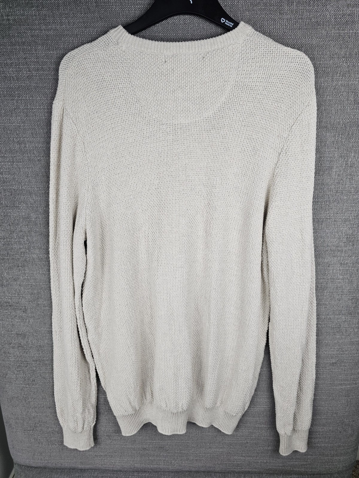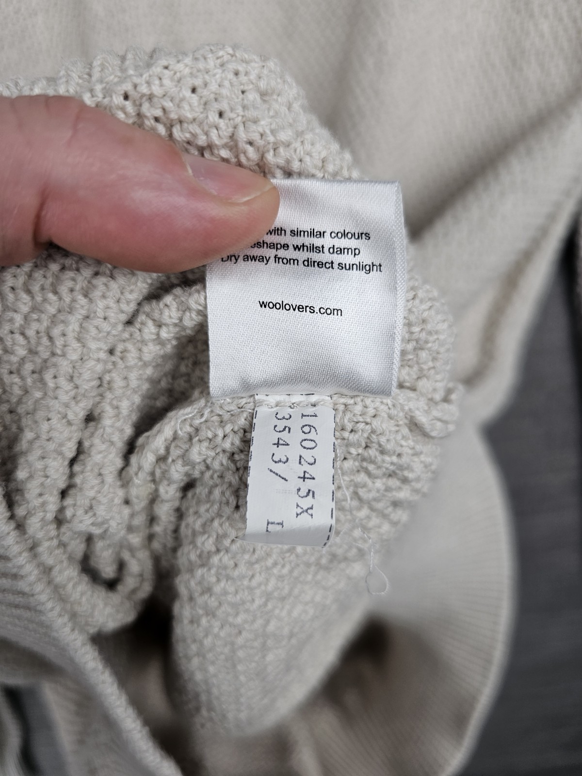 как выглядит Woolovers Jumper Mens Large L Cream 100 Cotton Chunky Knit Crew Neck Sweater фото