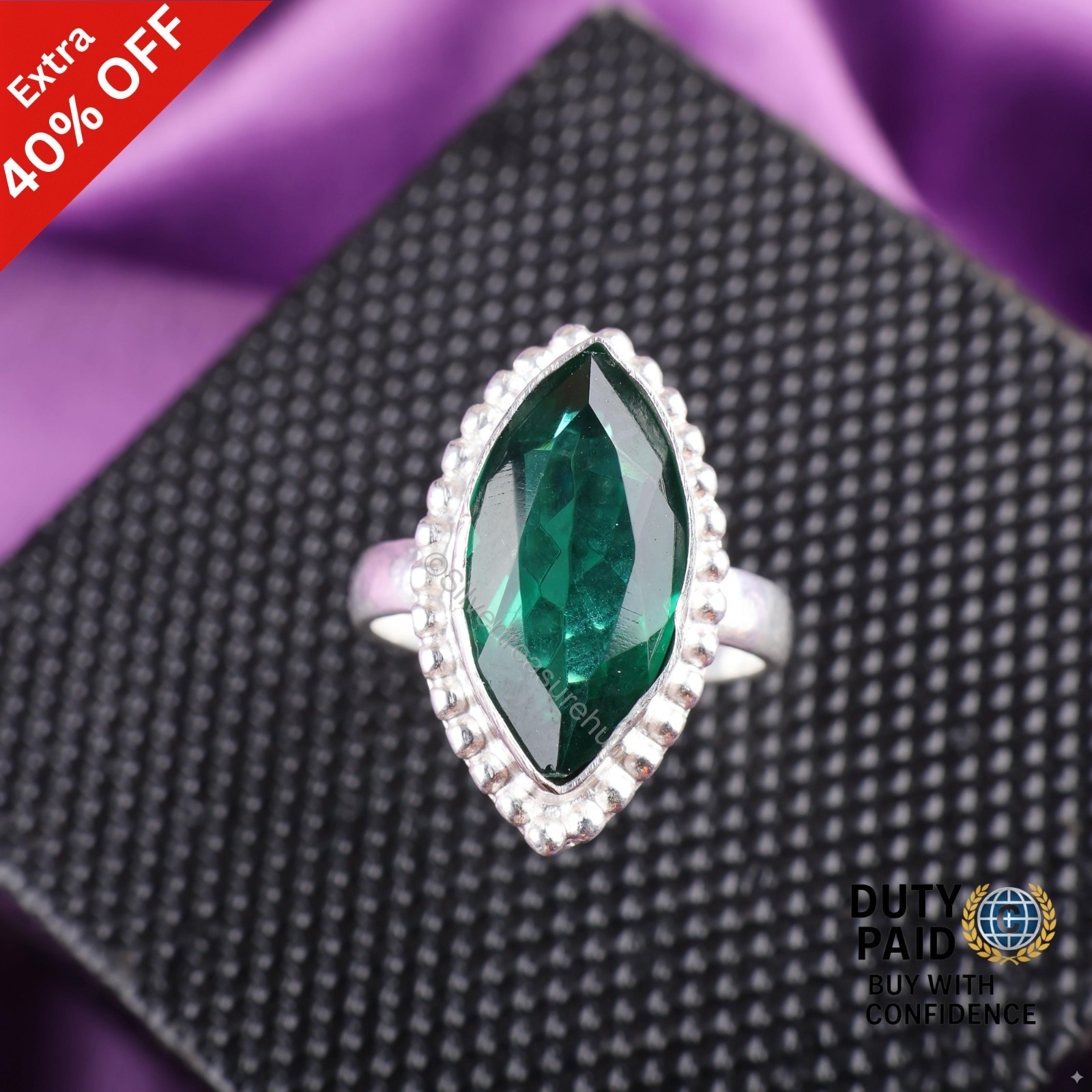 как выглядит Valentines Deal Natural Green Emerald Wife Band Ring Jewelry 925 Sterling Silver фото