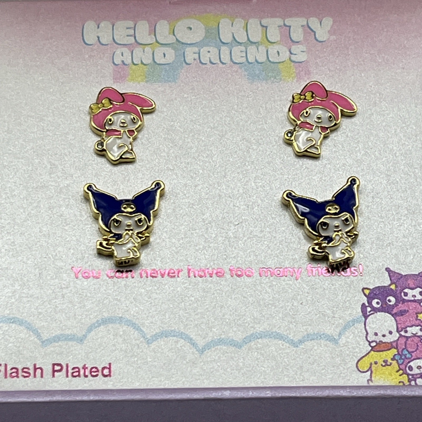 Sanrio Hello Kitty 18k Gold Flash Plated Kuromi My Melody Stud Earrings Set