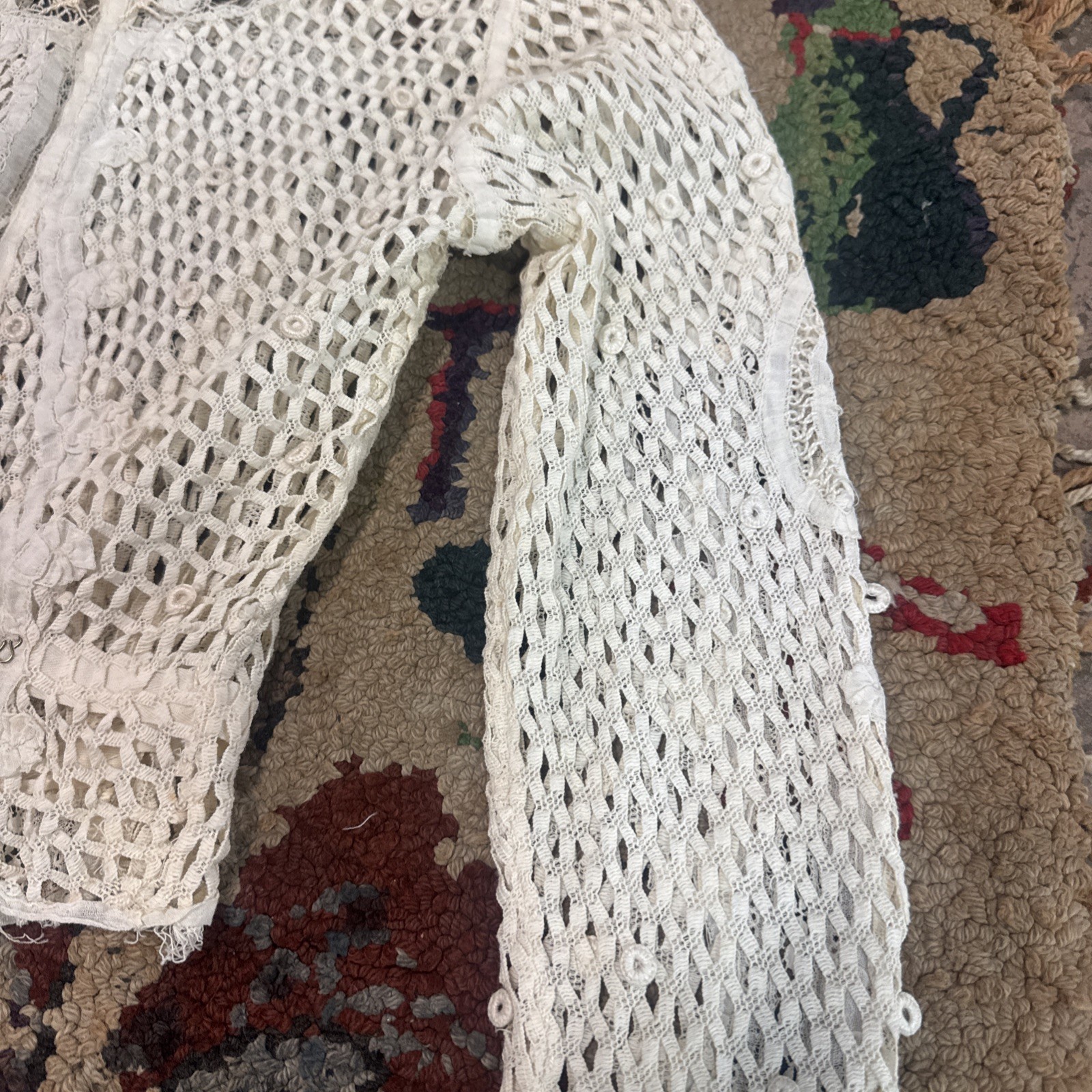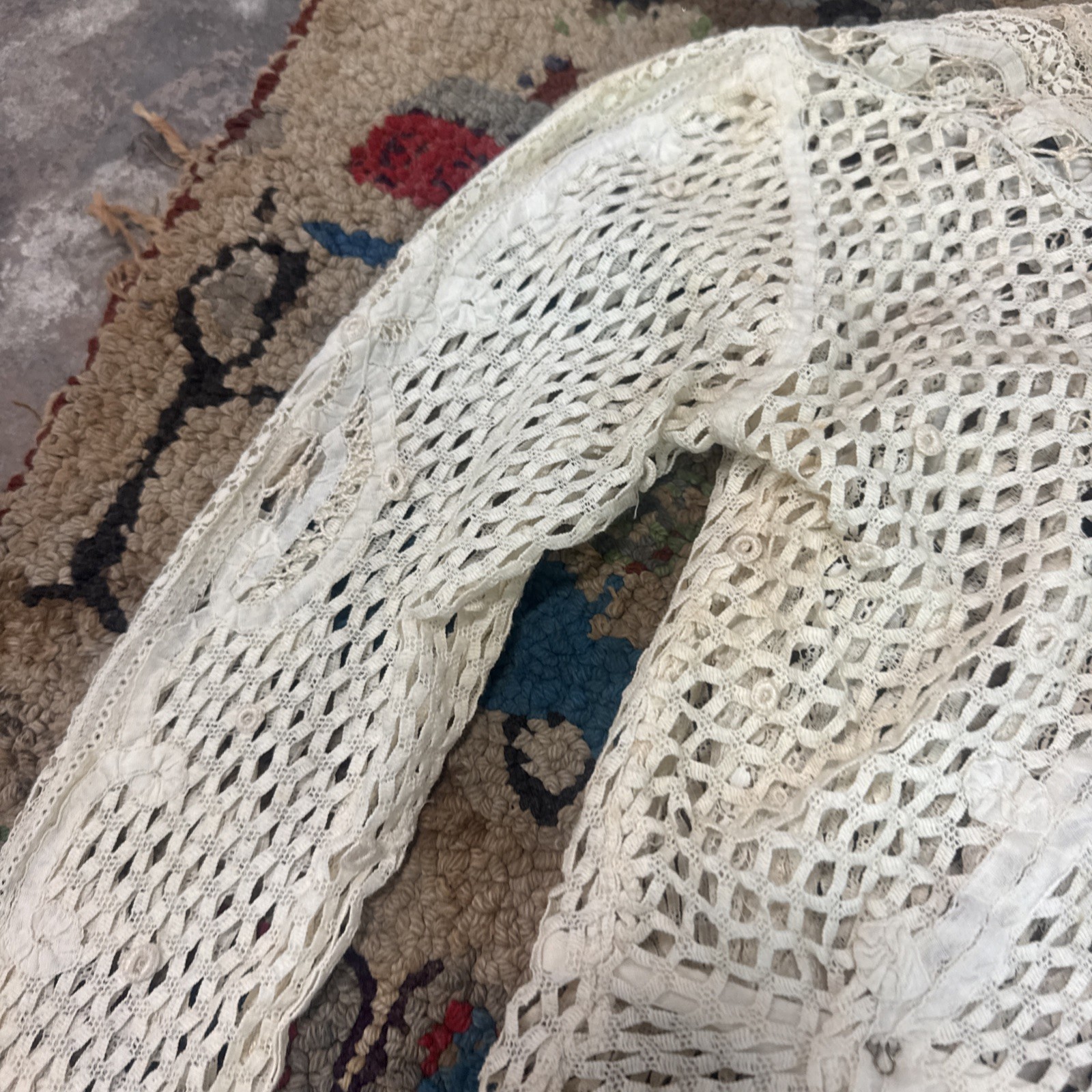 Antique Edwardian Bodice Mixed Lace Bobbin High Neck Dress Blouse Top Vintage