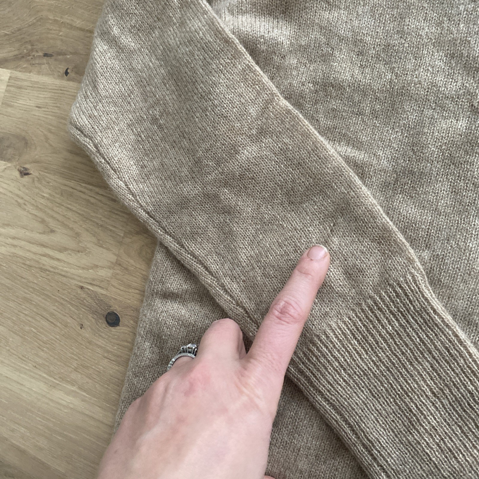 как выглядит 100 Cashmere Knit Pullover Sweater Small Knit Ribbed Beige Camel Magaschoni фото
