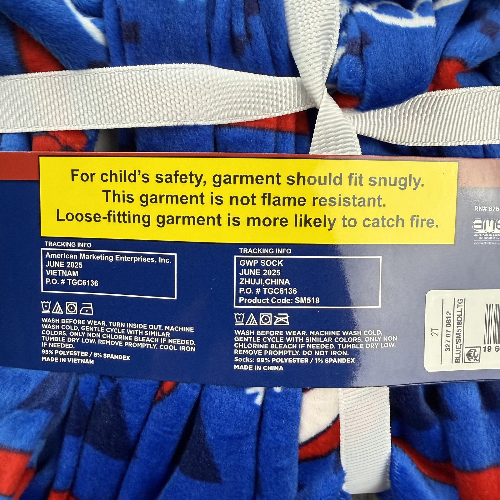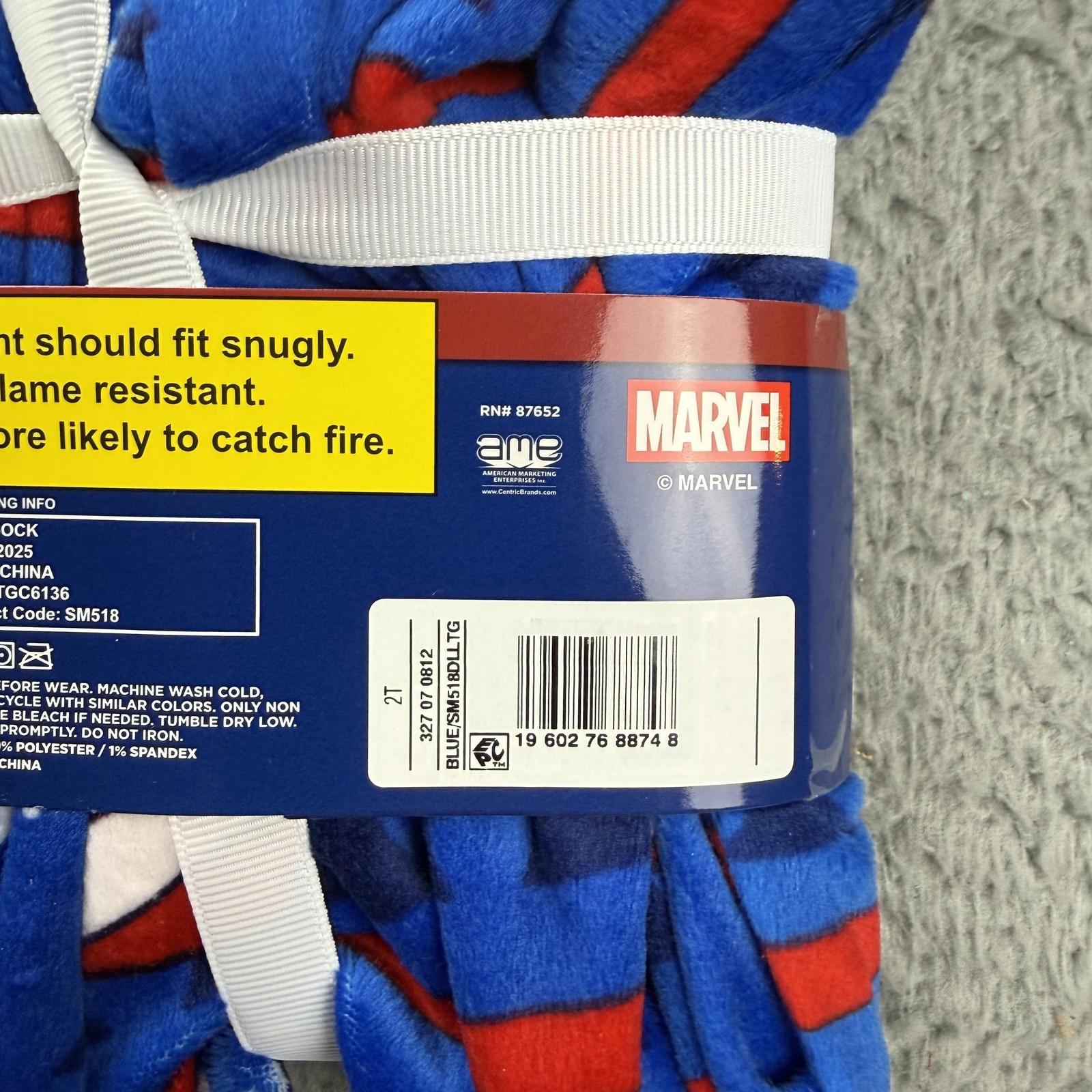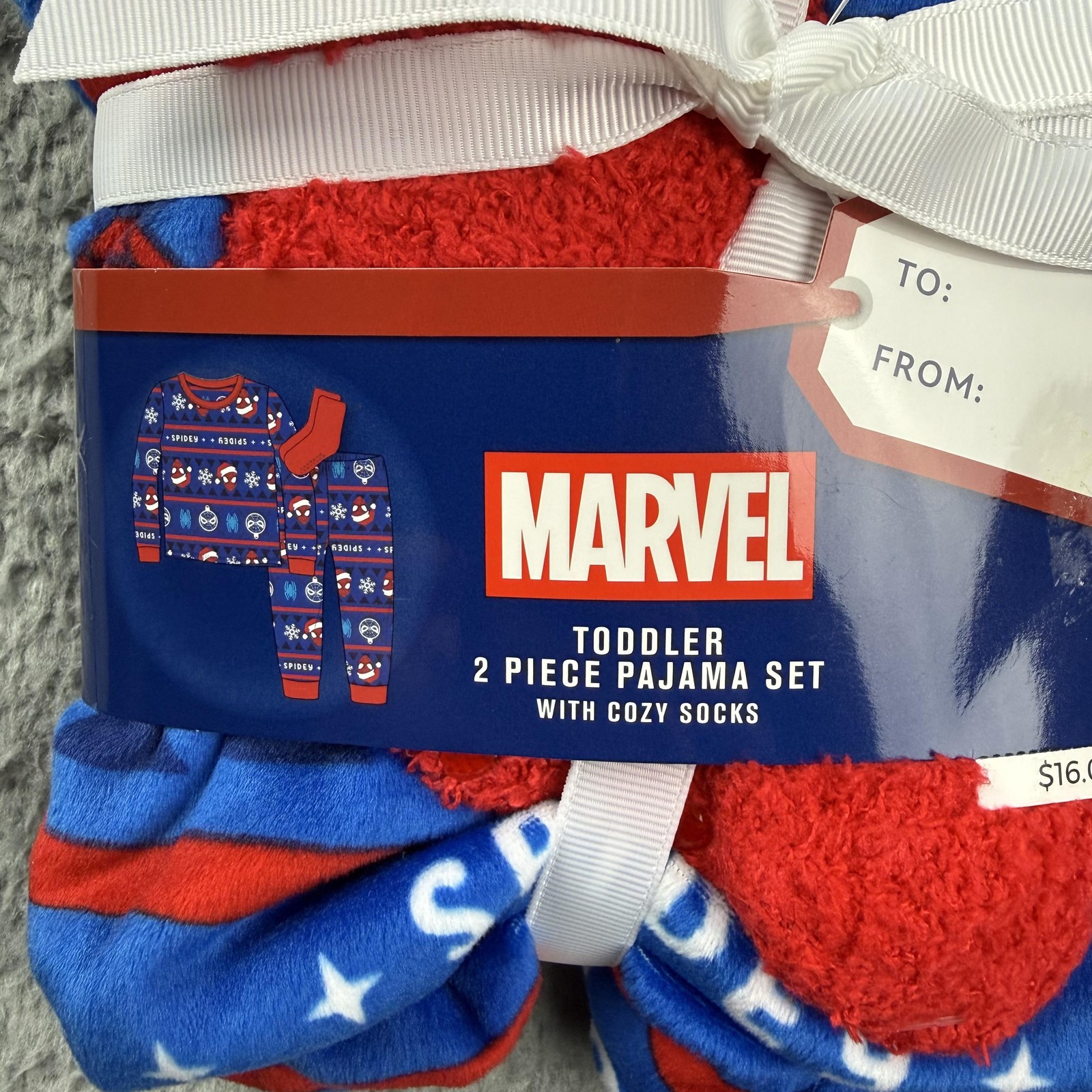 Marvel Pajama Set Toddler Boys 2T Blue Fleece 2PC Cozy Socks Spider-Man Xmas