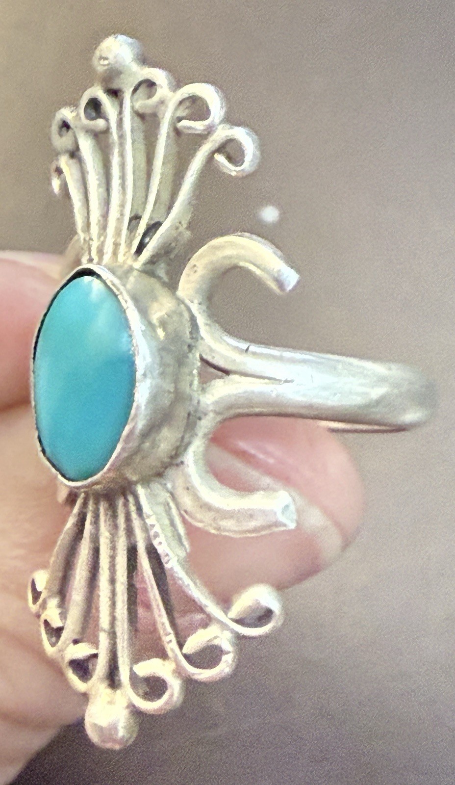 как выглядит Vintage Navajo Sterling Silver Turquoise Designed Native American Ring Size 5 фото
