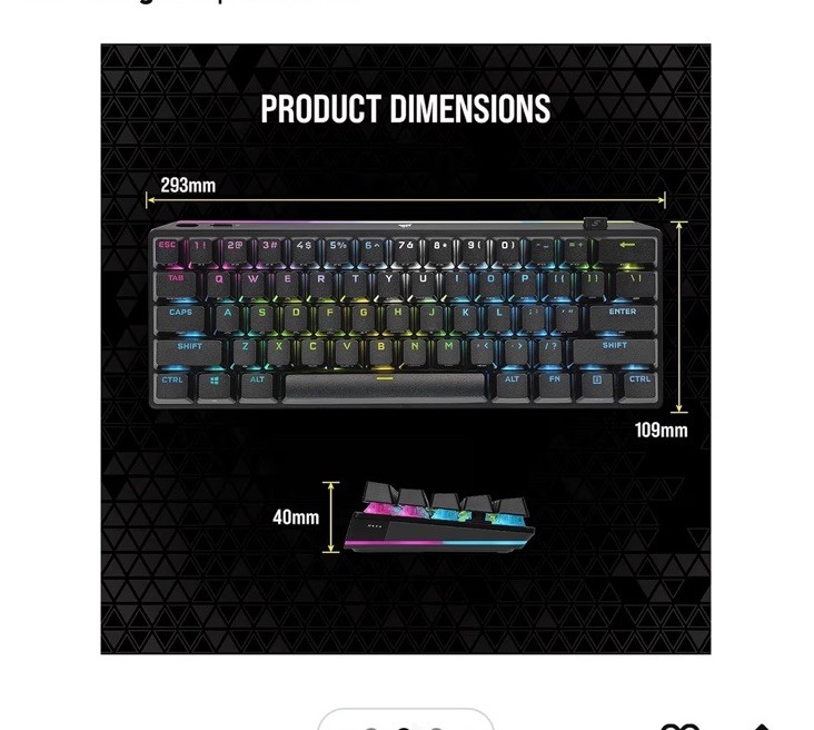 CORSAIR - K70 Pro Mini Wireless 60 RGB Mechanical Cherry MX SPEED Linear Swi...