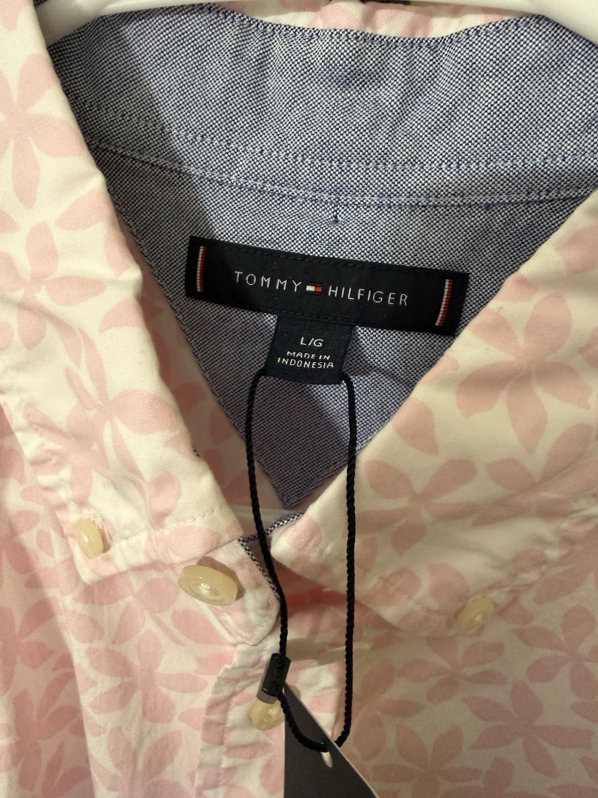 Men s Tommy Hilfiger Short Sleeve Button Down Pink Shirt, Regular Fit, Size L
