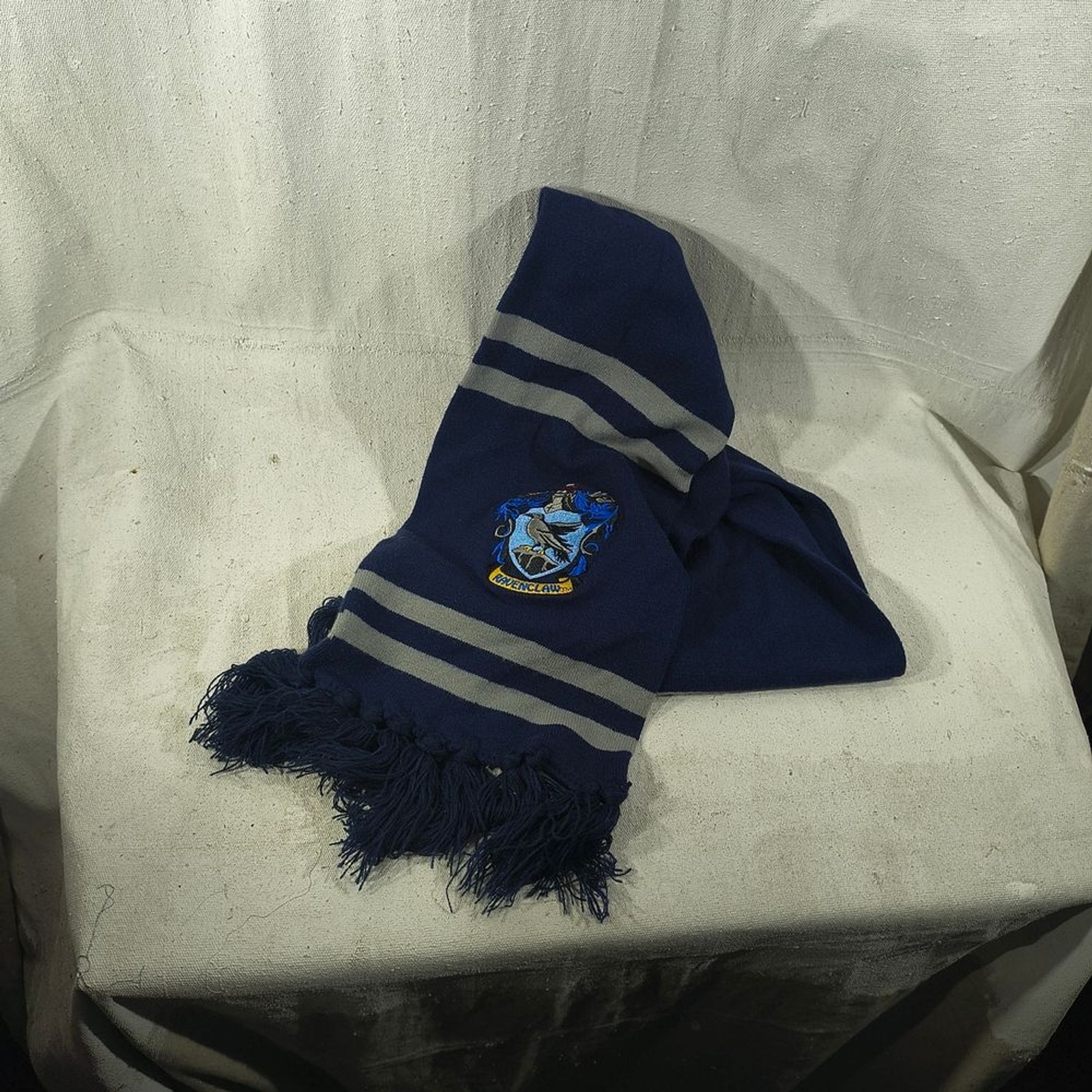 как выглядит Harry Potter Ravenclaw Navy Blue and Gray Scarf with Crest фото