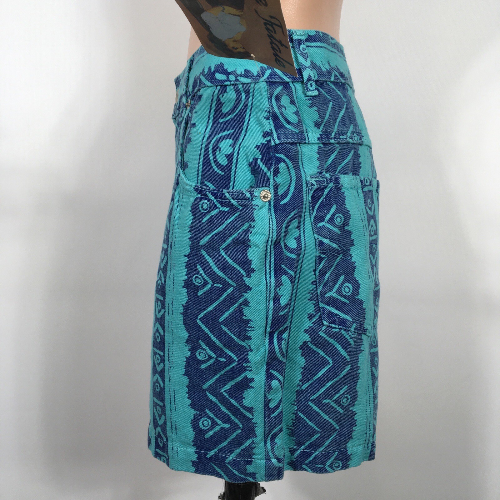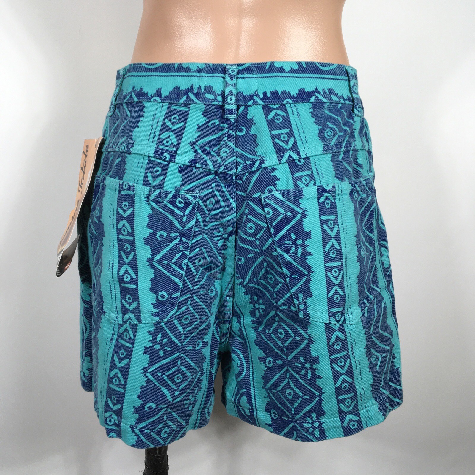 VTG 90s Geometric Aztec High Waisted Femme Fatale Denim Shorts NWT Sz 11 Funky
