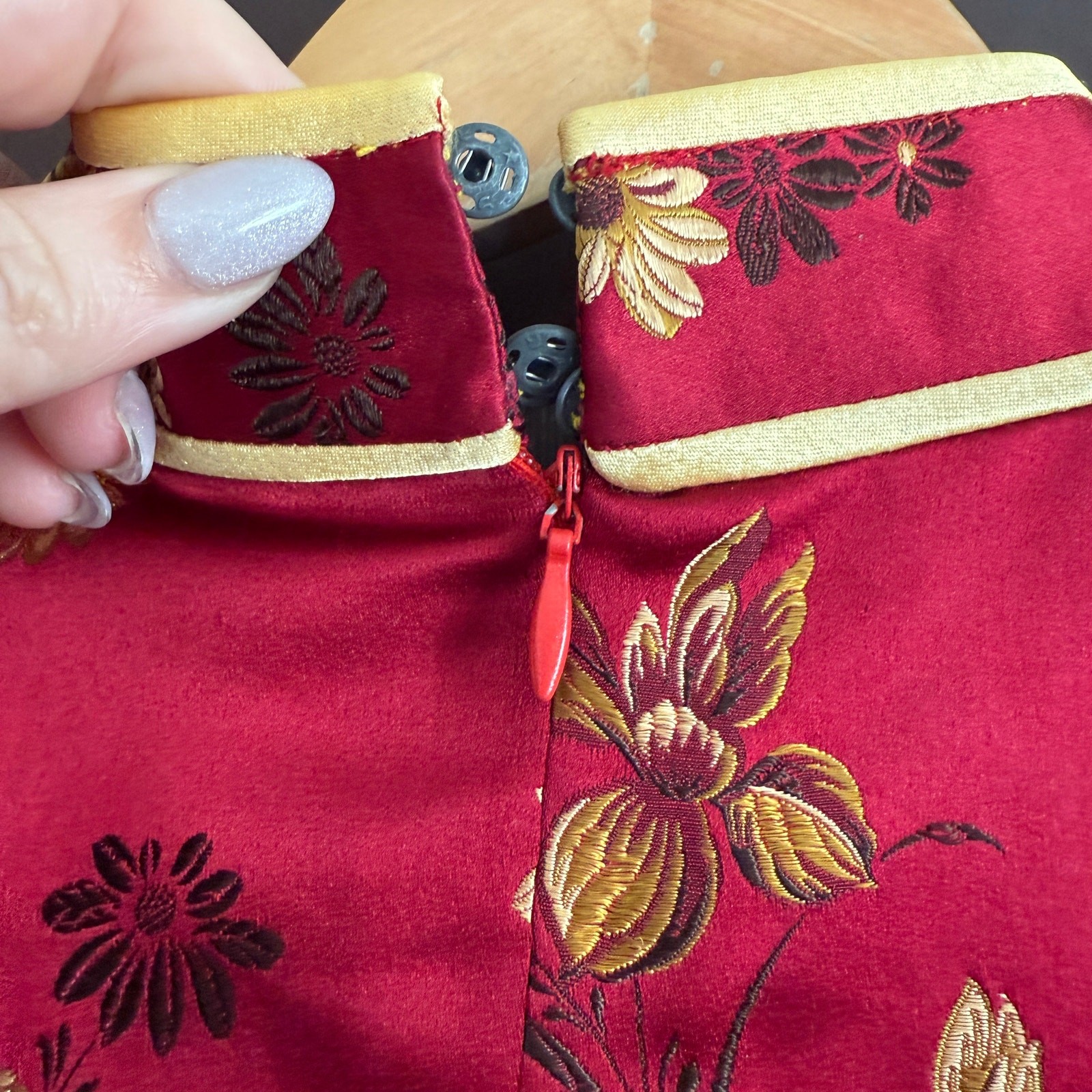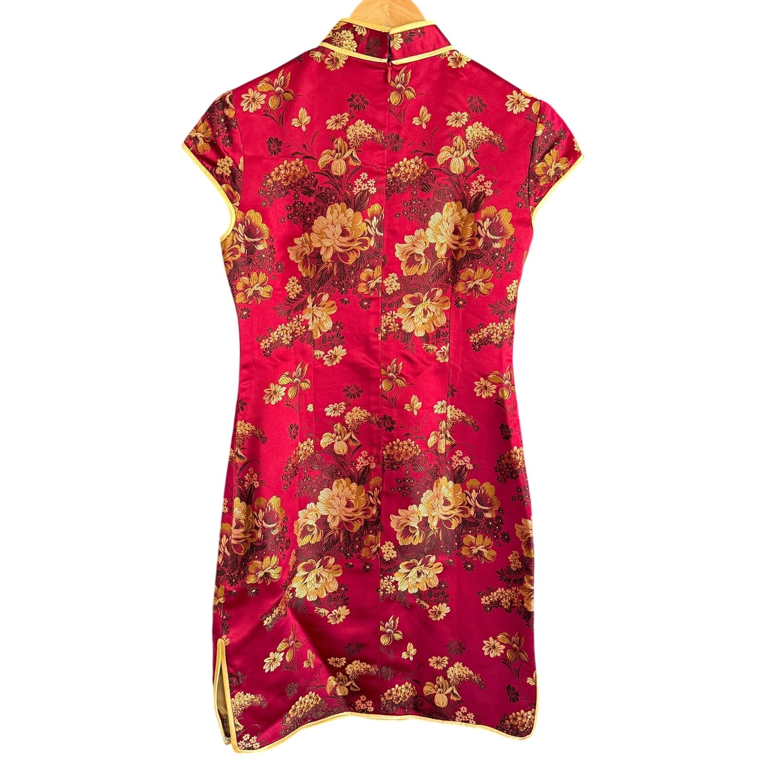 как выглядит Vintage Red and Gold Brocade Silk Satin Qipao Cheongsam Dress Small фото