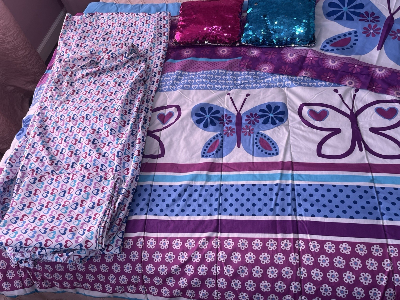 как выглядит Butterflies Hearts Flowers Twin Bedding Set Cartoon Comforter Pillowcase Sheet фото
