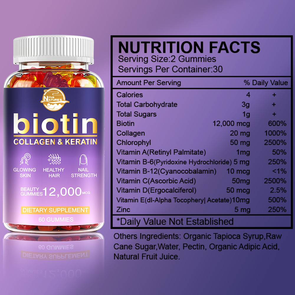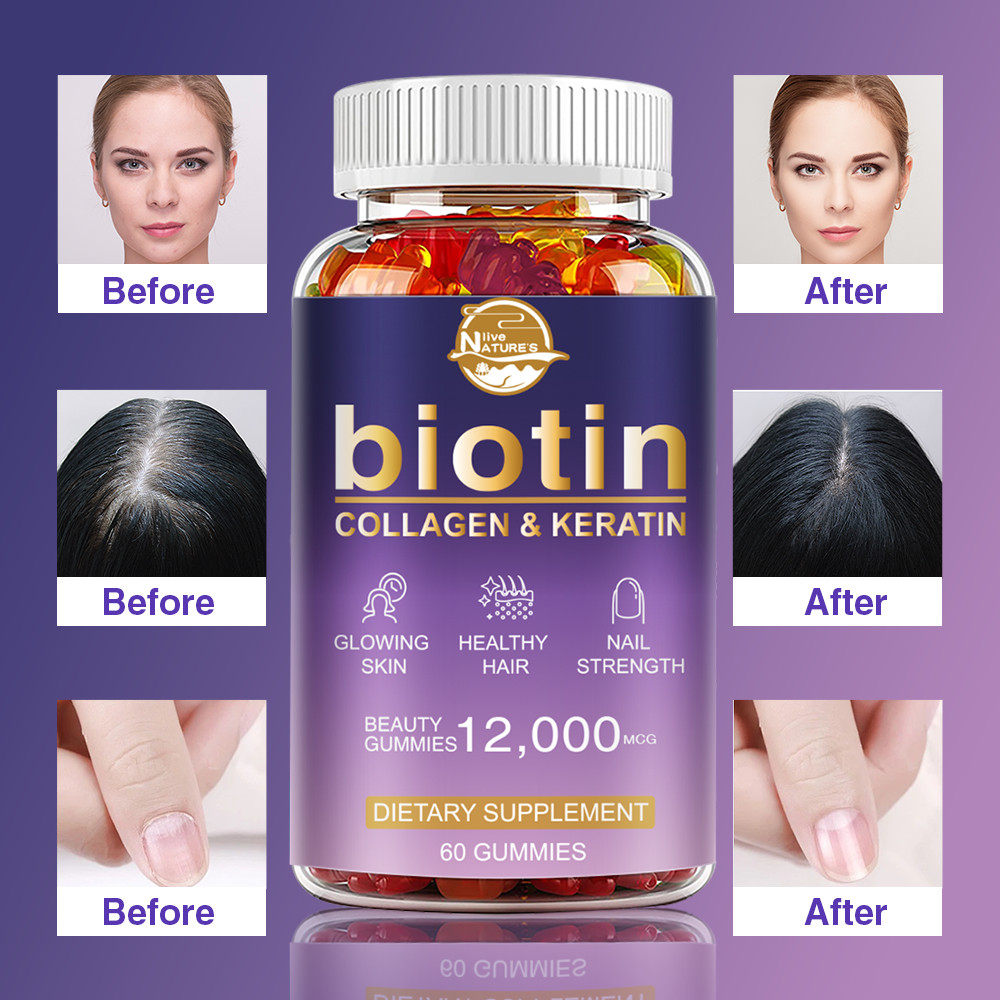 как выглядит 2 Packs Biotin Gummies 12,000mcg - Extra Strength Biotin - for Hair Skin Nails фото
