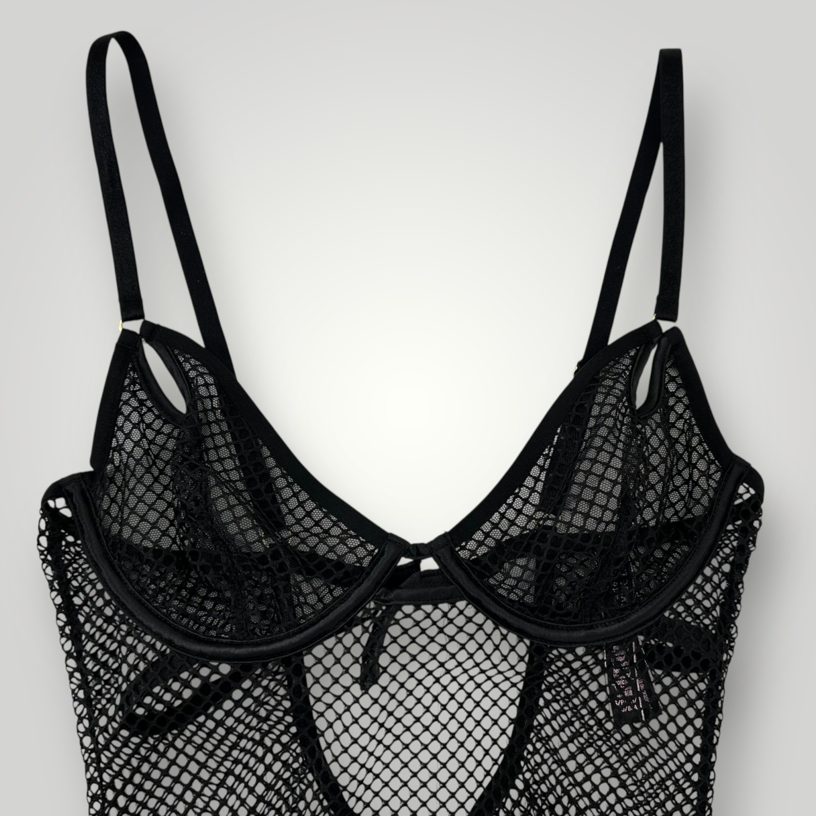 Victoria's Secret Fishnet Dress Womens Small Black Sheer Lingerie Mesh Open Back