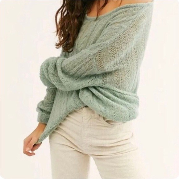 как выглядит Free People Fresh Mint Cable Knit Sweater S фото