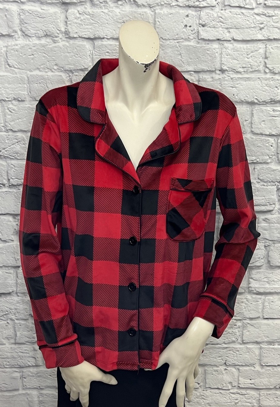 JOYSPUN WOMEN'S 2 PIECE BLACK RED CHECKED PRINT PAJAMAS SET SIZE L