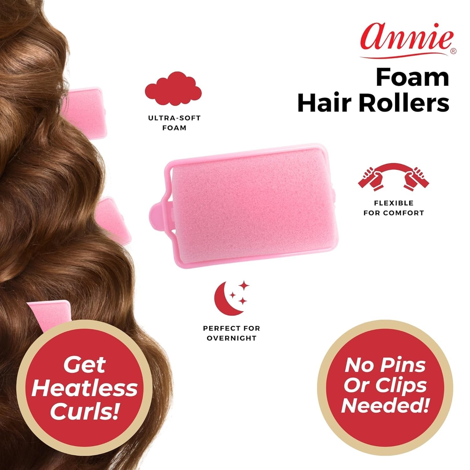 Heatless Jumbo Foam Curlers - 6 Soft Rollers for Overnight Comfort Waves
