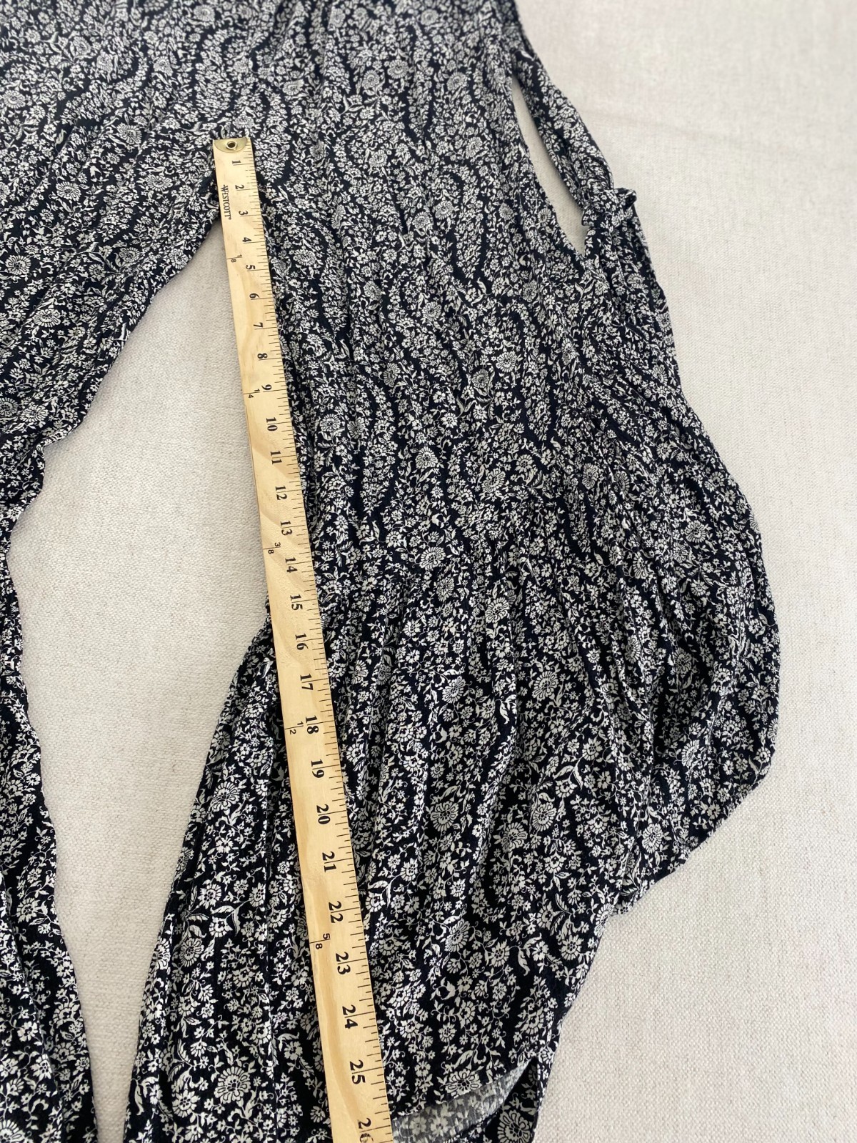как выглядит American Eagle Wide Leg Pants Womens XS Black White Floral Elastic Waist Boho фото