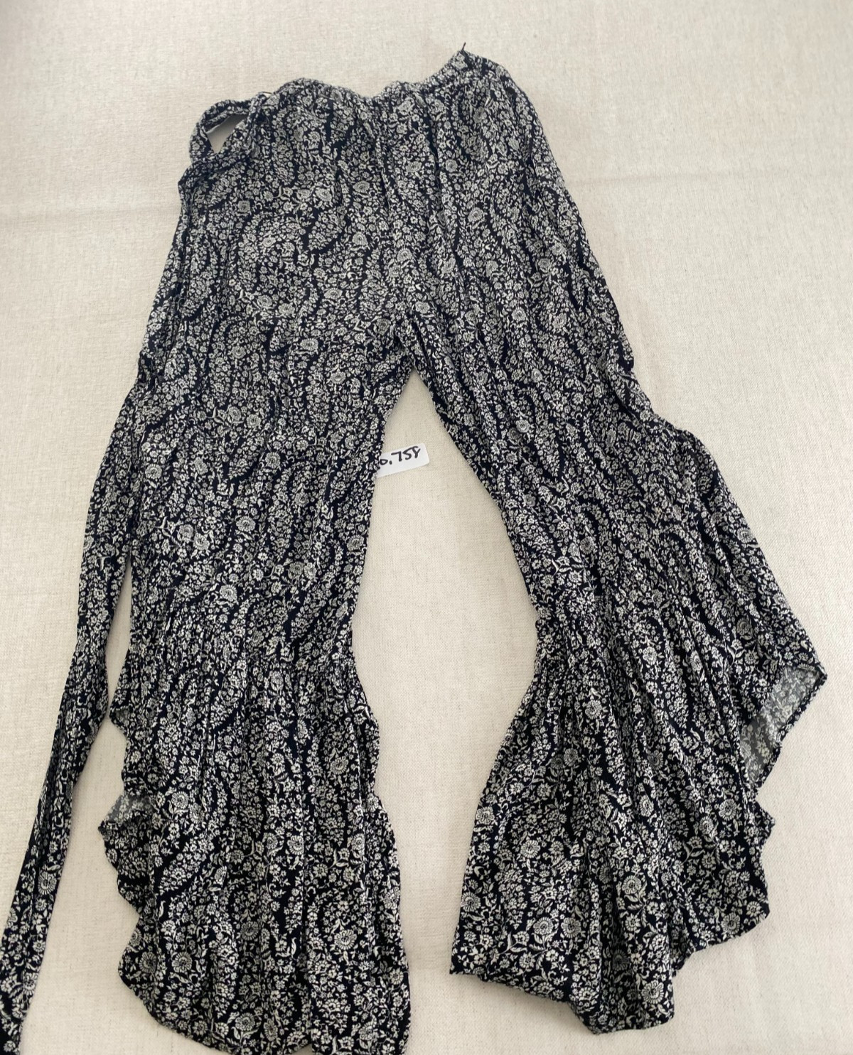 American Eagle Wide Leg Pants Womens XS Black White Floral Elastic Waist Boho
