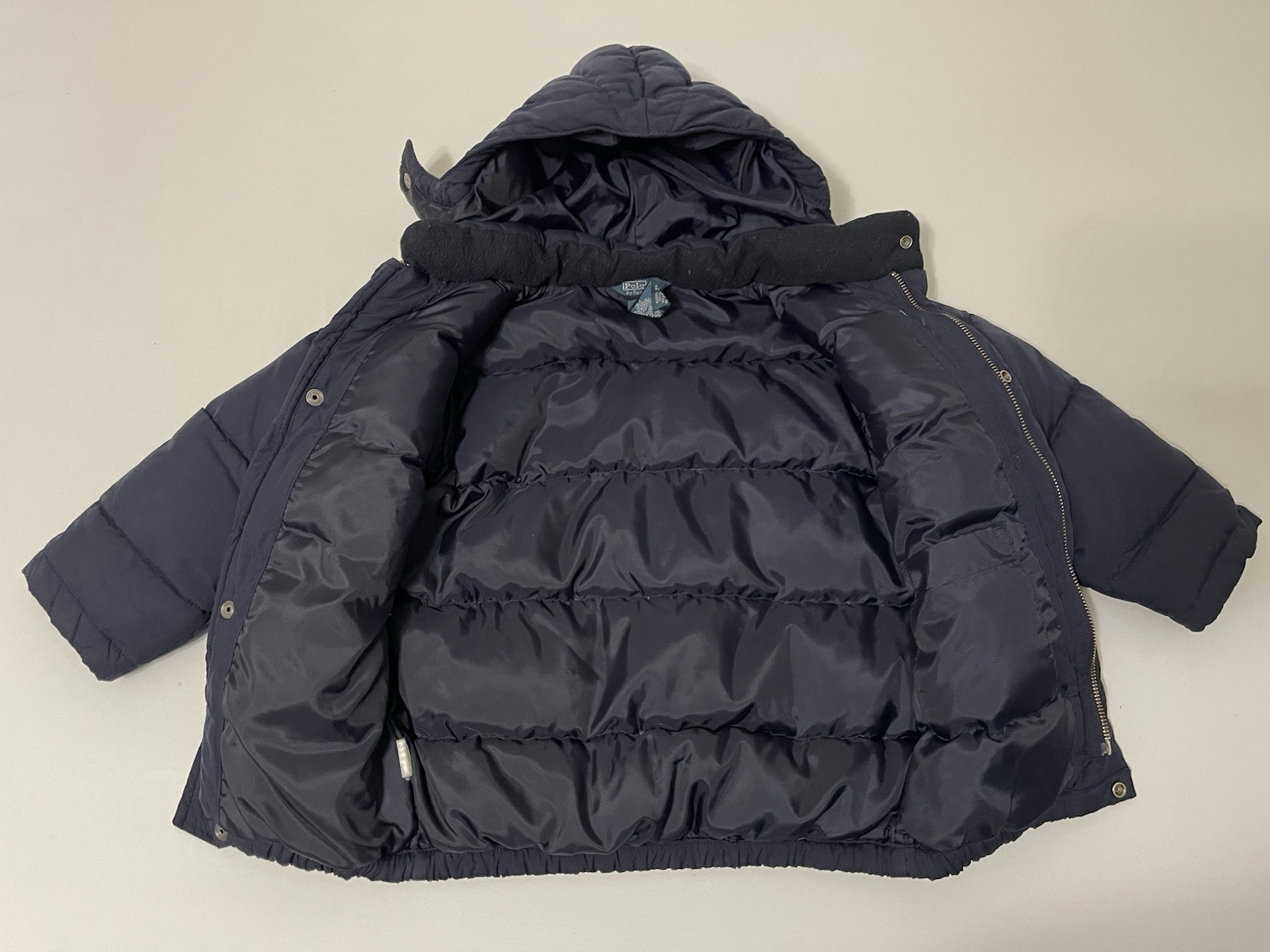 как выглядит Polo Ralph Lauren Kids Toddler Down Puffer Jacket Navy Red Size 4T Hooded фото