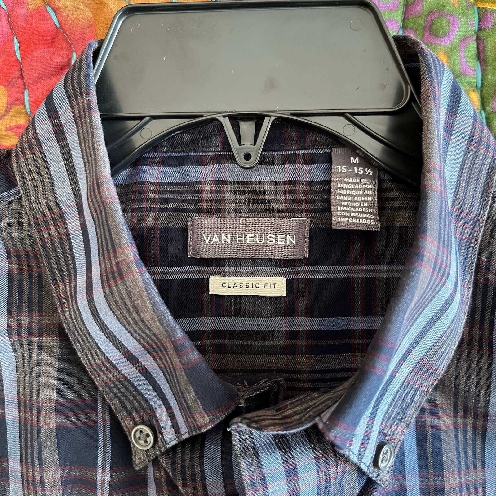 как выглядит Van Heusen Mens Size Medium, 15-15.5, Grey Black, Plaid, Button Up, Short Sleeve фото