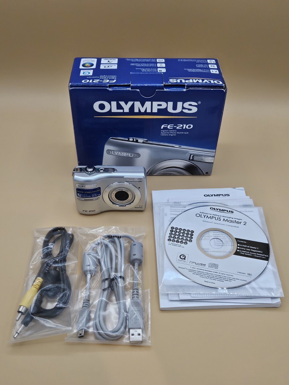 Olympus Digital Camera FE-210 7.1MP Silver W/ Original Box, 1 GB Memory, Tested