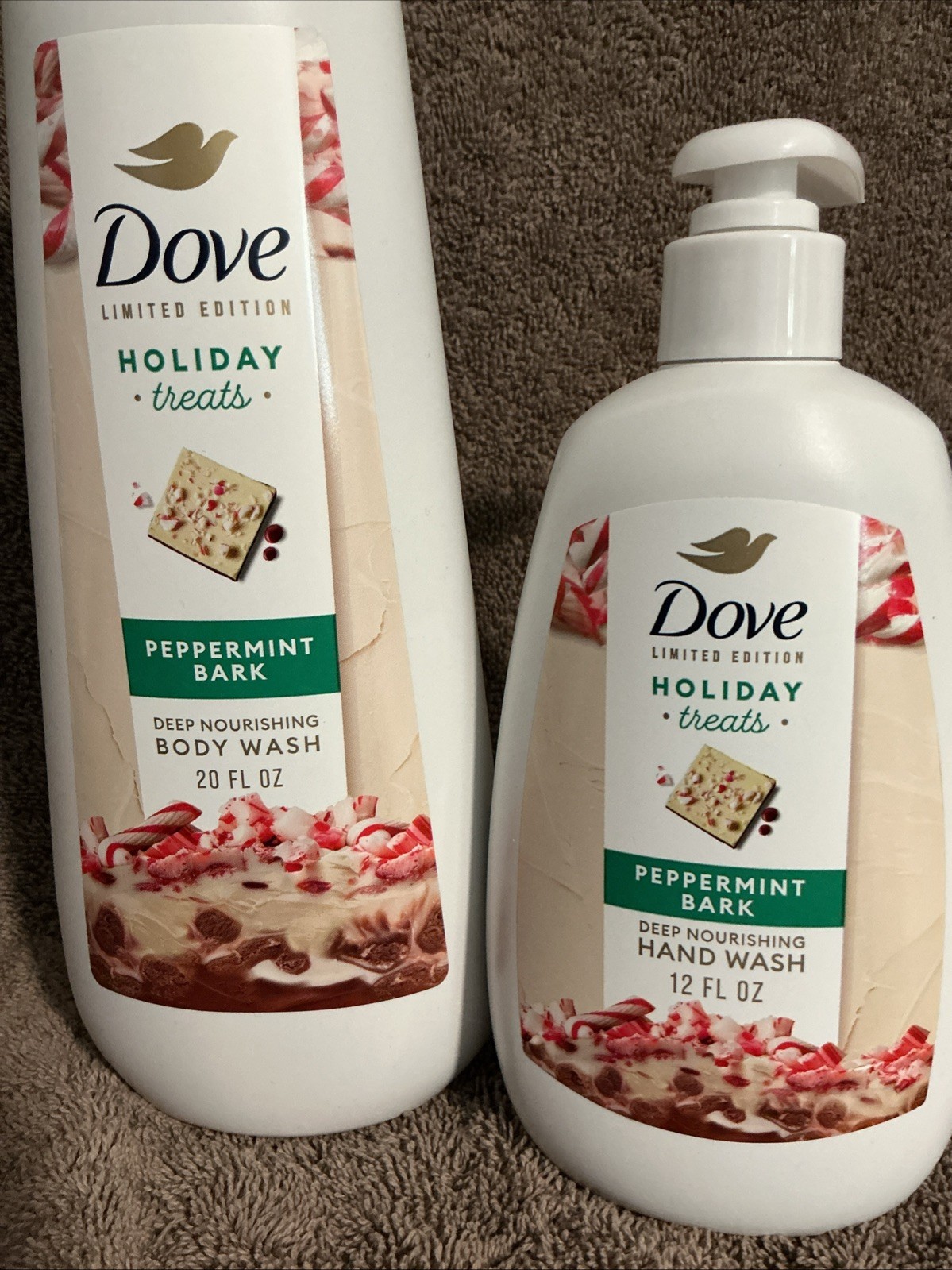 как выглядит 3 Pc Dove Peppermint Bark Body Wash 2 Hand Soap 1 Limited Holiday Treat фото