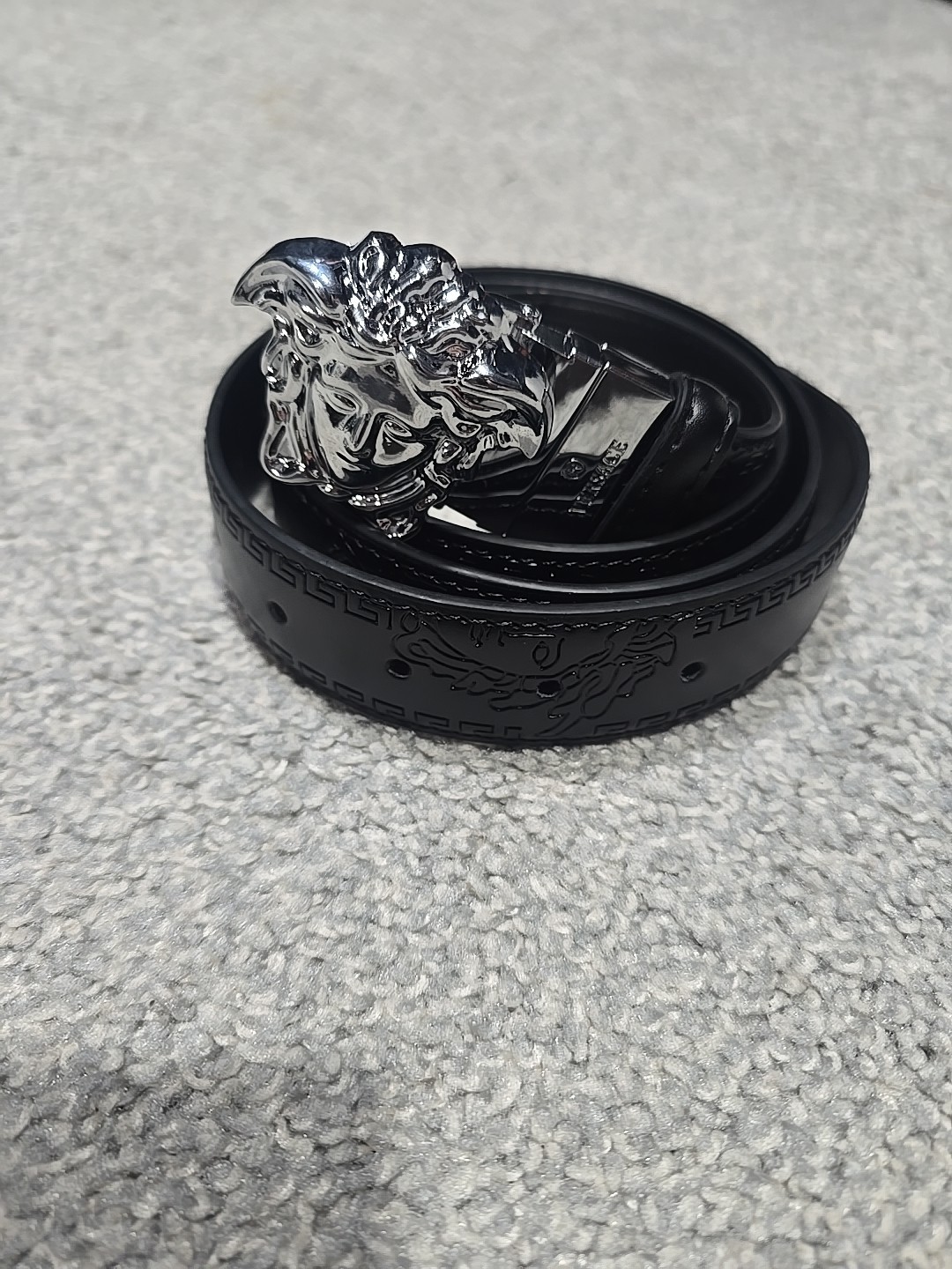 как выглядит Versace Medusa Mens Black Leather Belt with Silver Buckle 32 To 36 фото