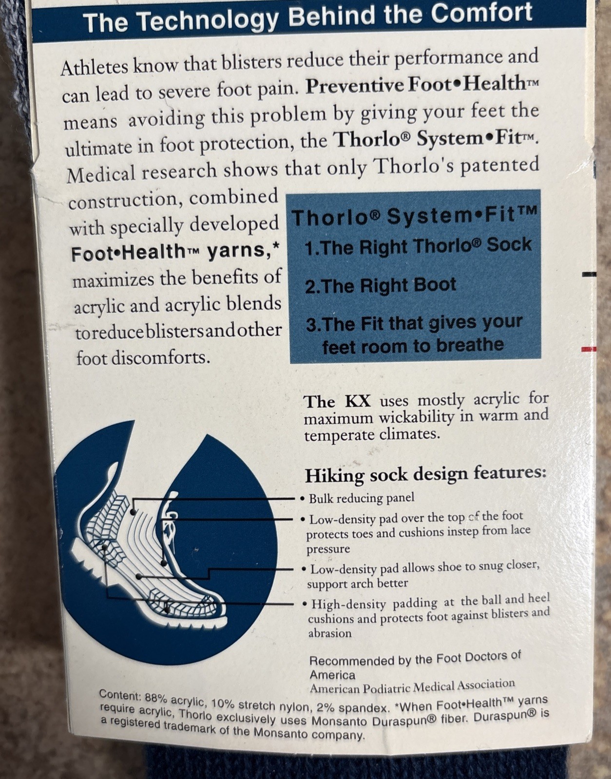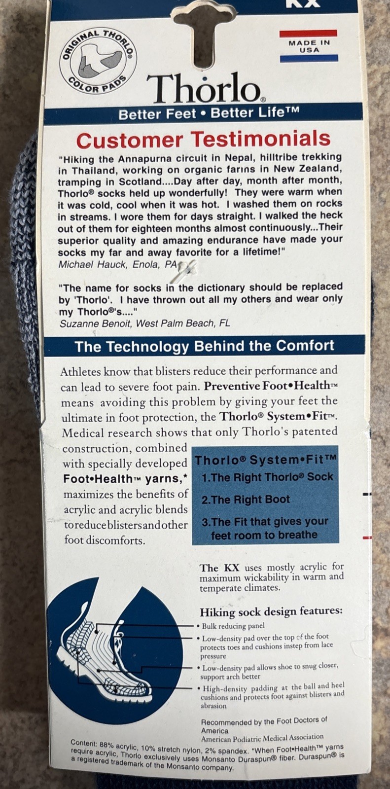 VTG Thorlo Outdoor Hiking Crew Socks USA Made Acrylic 1994 Men s 8.5-12.5 NOS