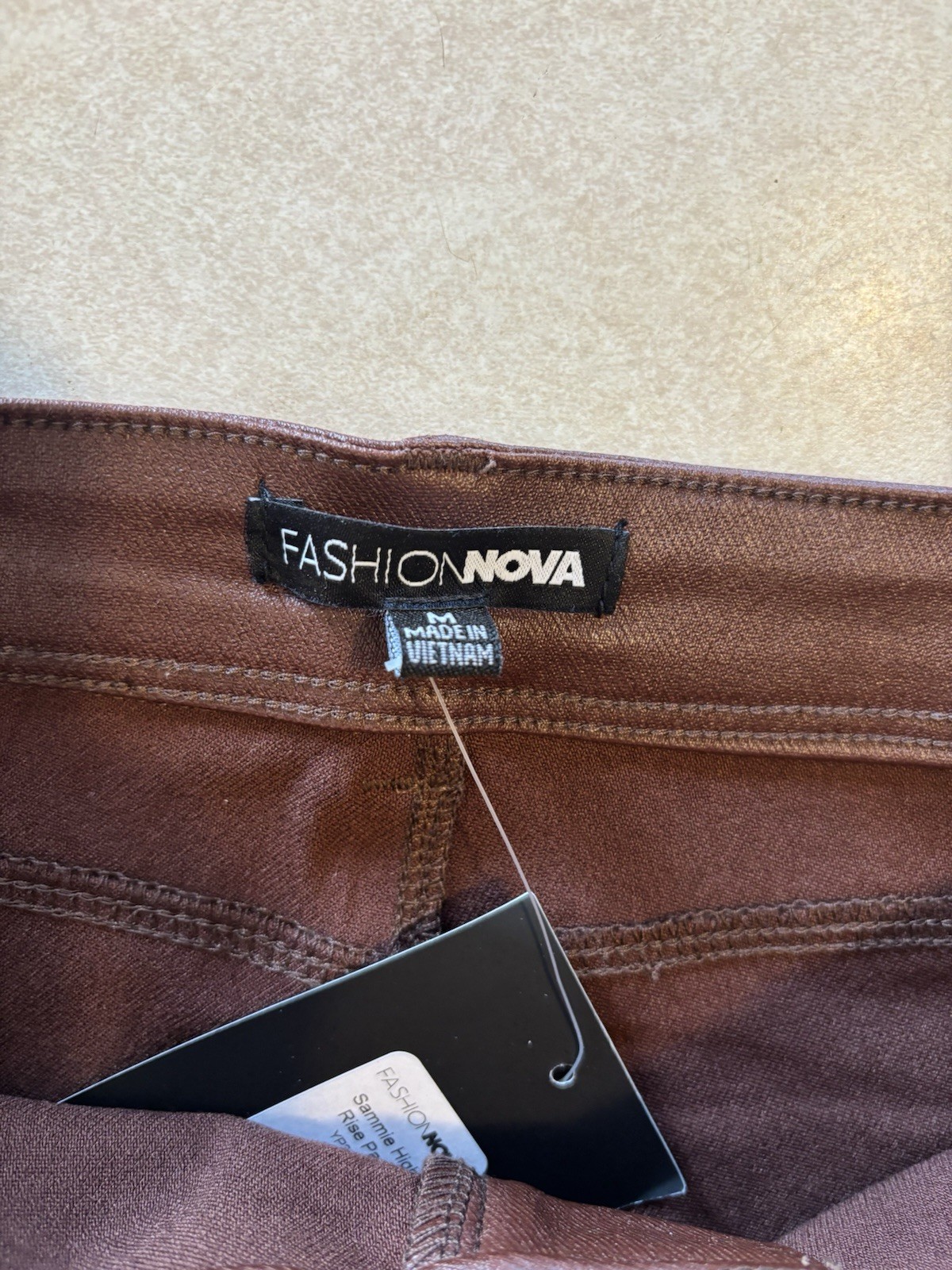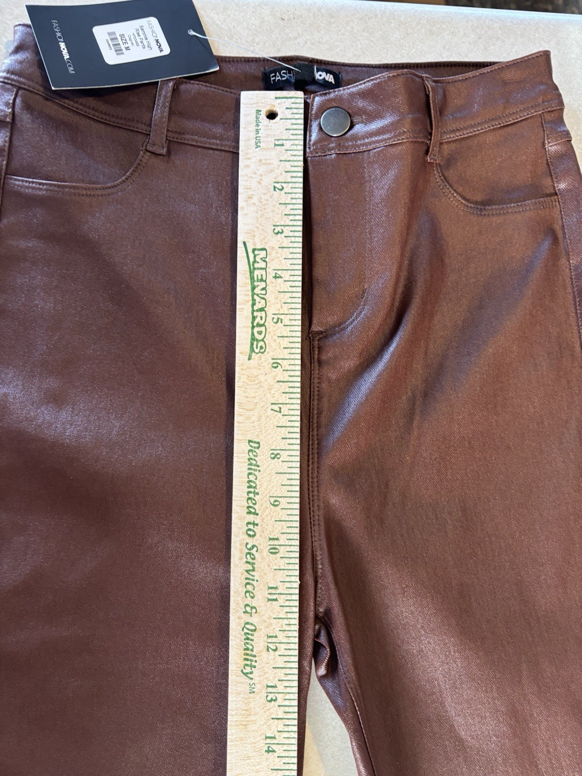 как выглядит Fashion Nova Sammie High Rise Faux Leather Pants Brown Cognac Size M NWT фото