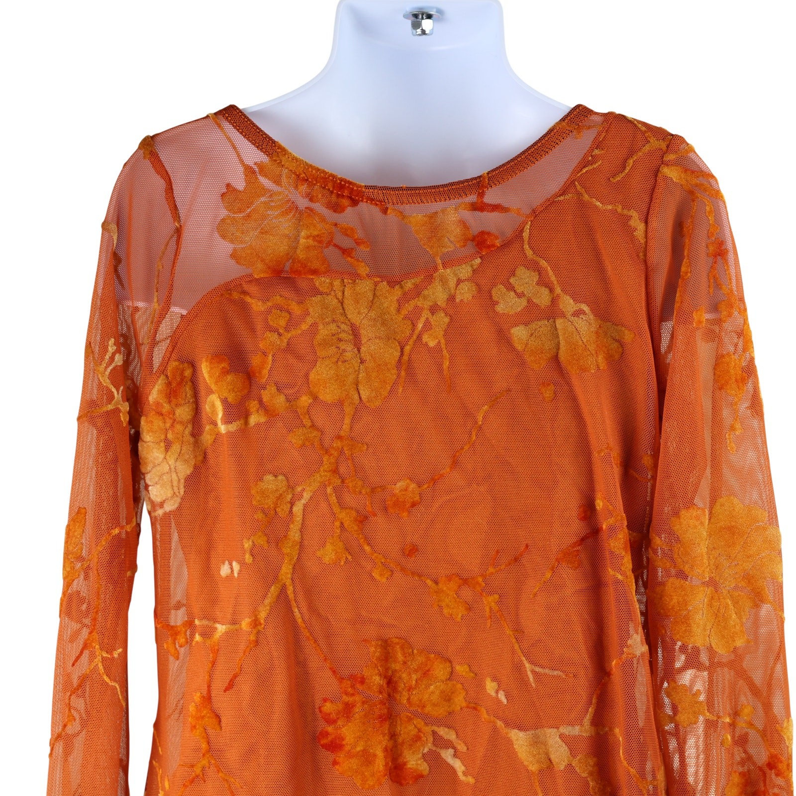 Weissman Lyrical Dance Costume MC Orange Gold Floral Sheer Long Sleeve Leotard