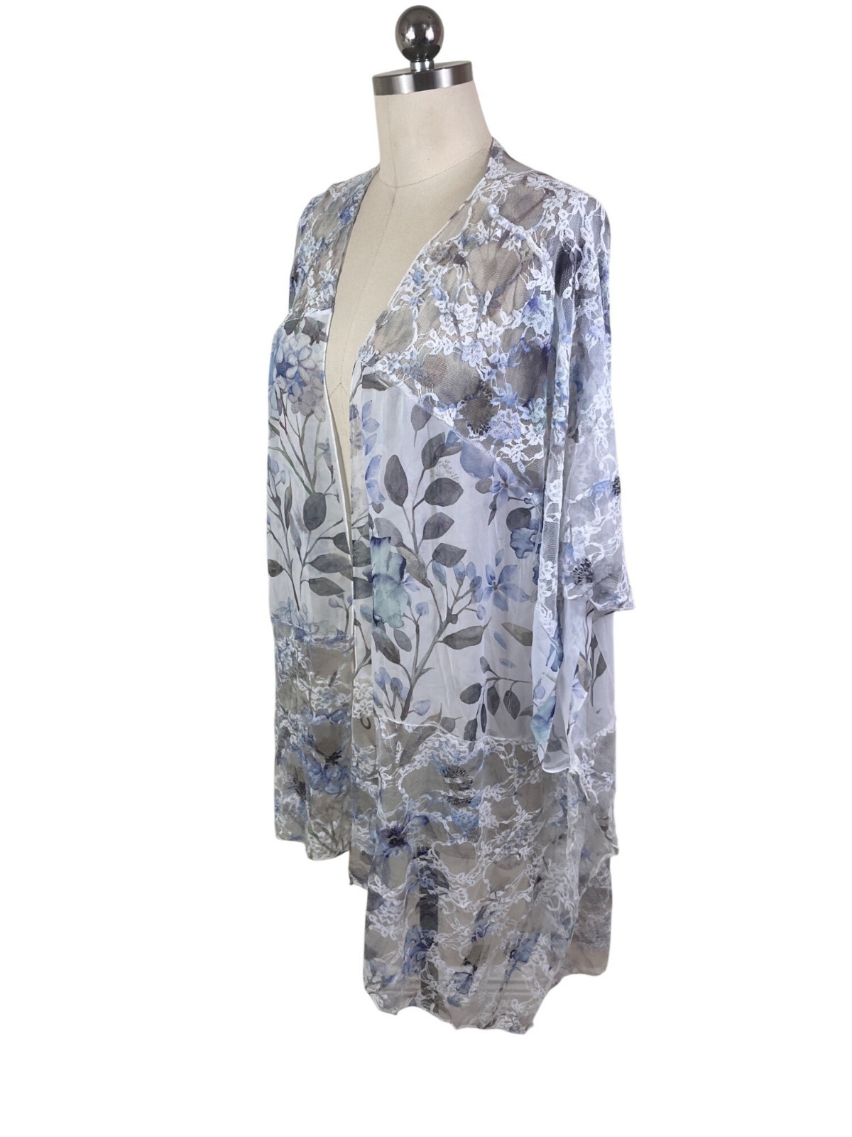 как выглядит Light Blue Floral Lace Kimono Duster Womens 1X Festival Spring Etheral Cottage фото