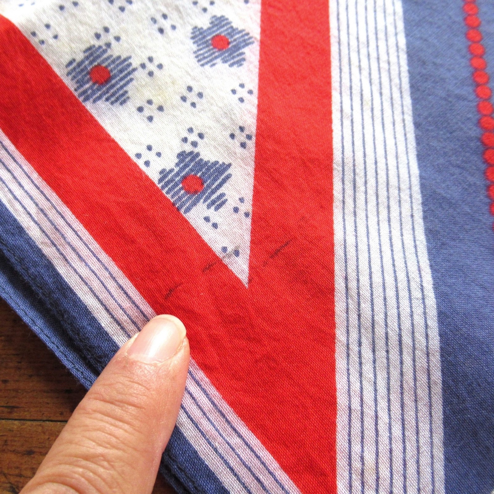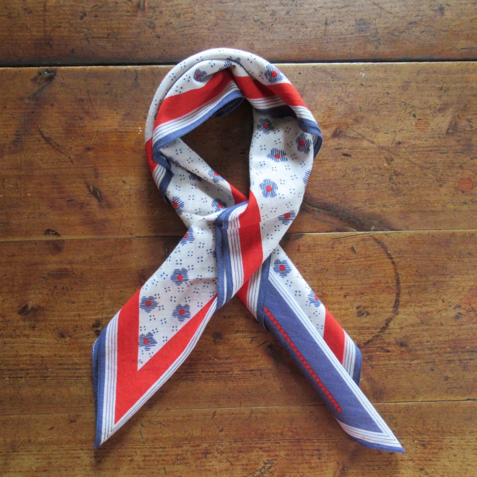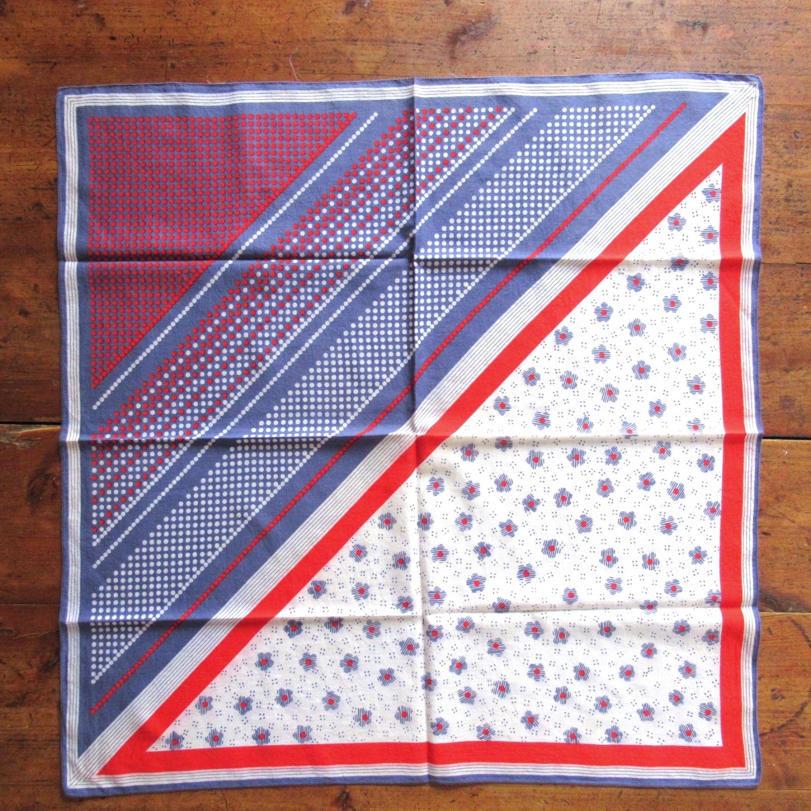 Vintage Italian Scarf Red White Blue Cotton Polka Dot Floral Retro Rockabilly