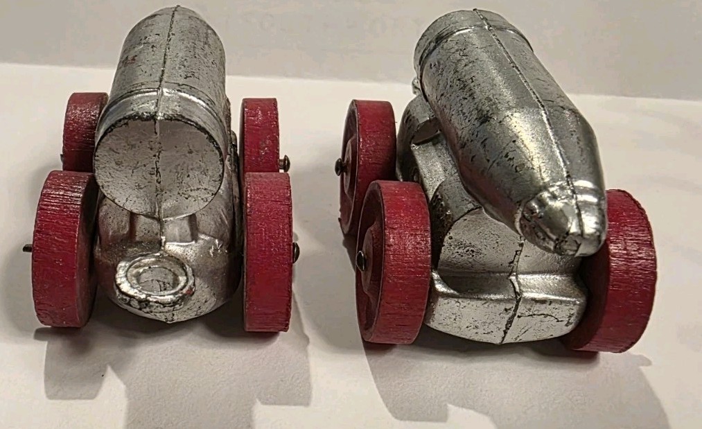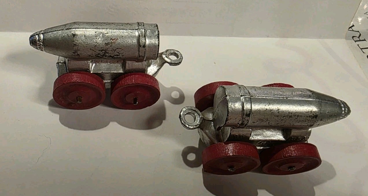 2 1930s MANOIL 96 LEAD DIME STORE G.I. SOLDIER LARGE SHELL ON TRUCK