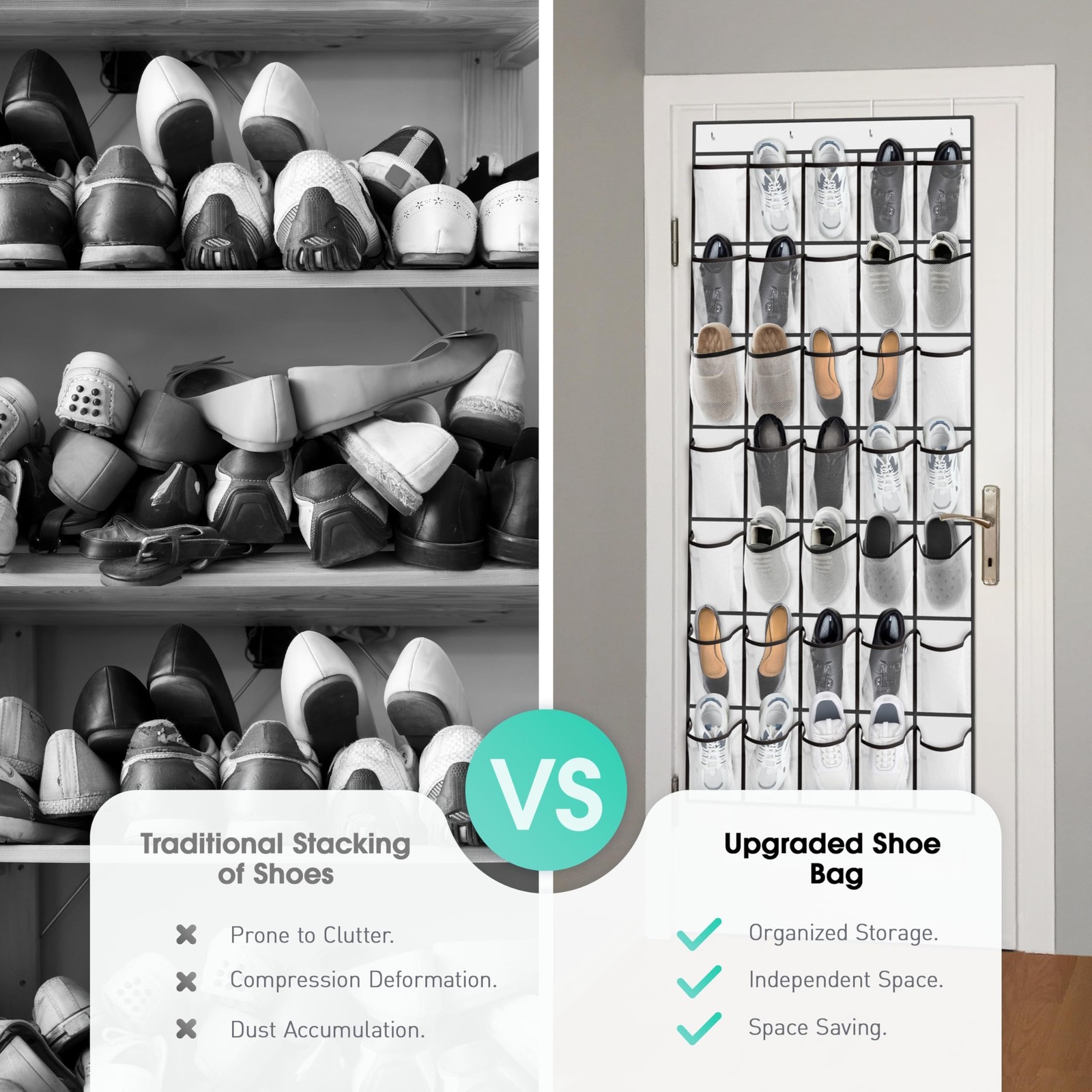 WVM Over the Door Shoe Organizer with 35 Breathable Mesh Pockets, Hanging Sho...