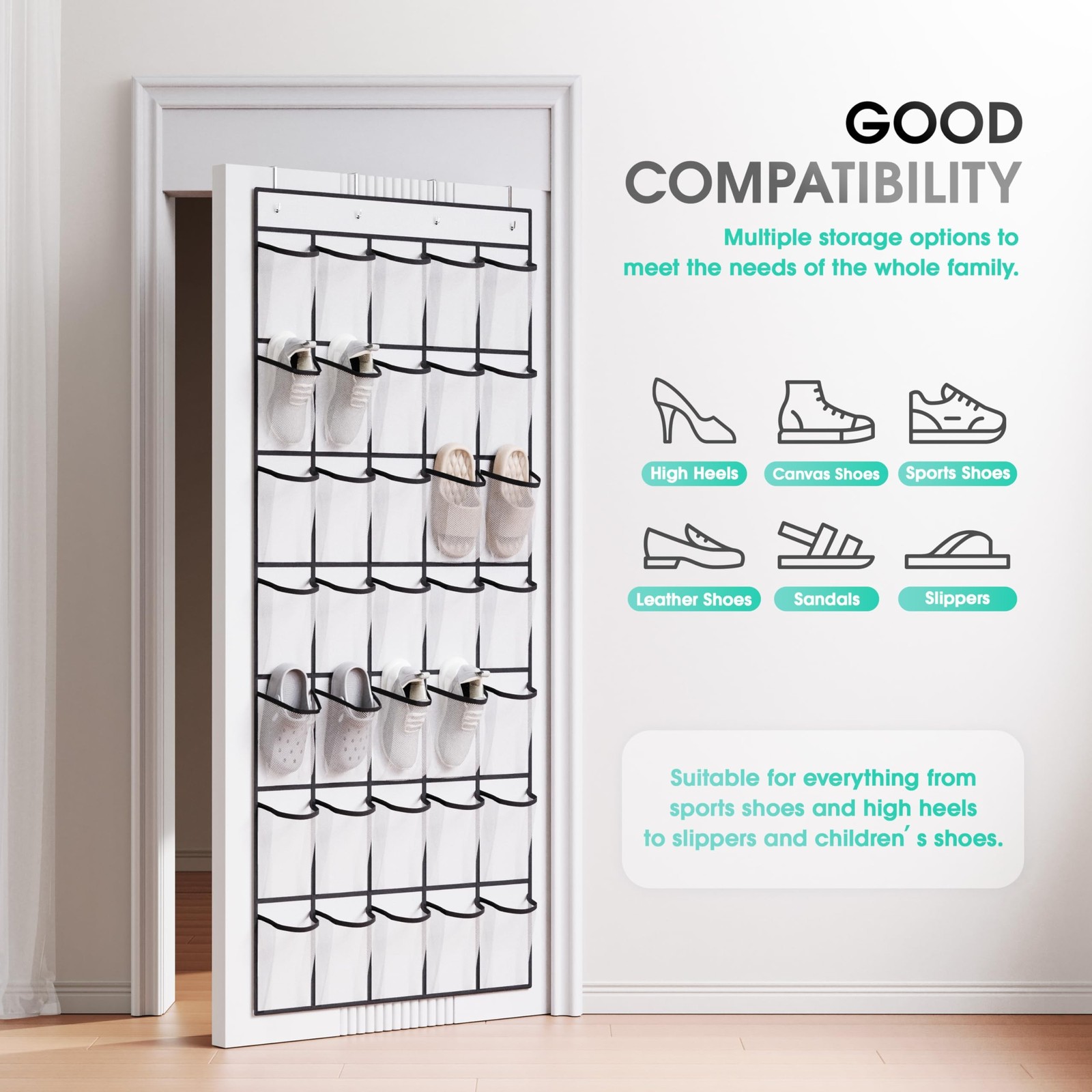 как выглядит WVM Over the Door Shoe Organizer with 35 Breathable Mesh Pockets, Hanging Sho... фото