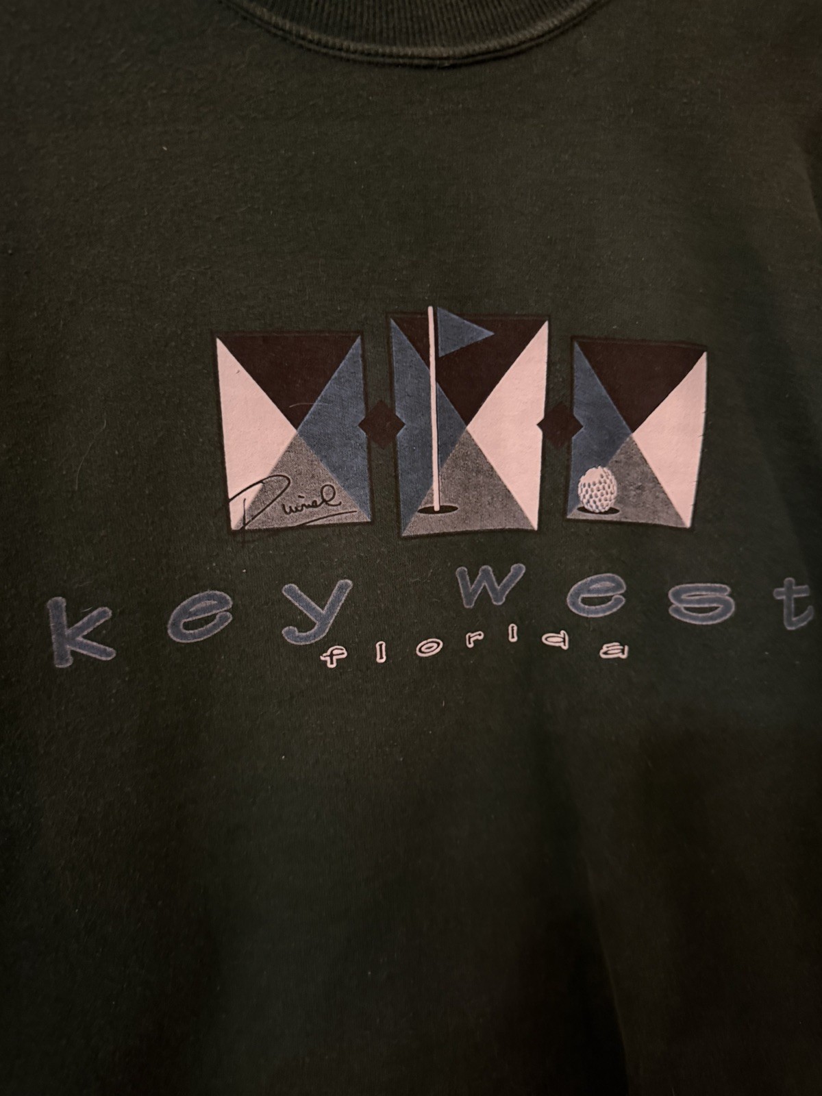 Vintage Key West Florida Sweatshirt Mens L Green Crewneck Pullover Golf Graphic
