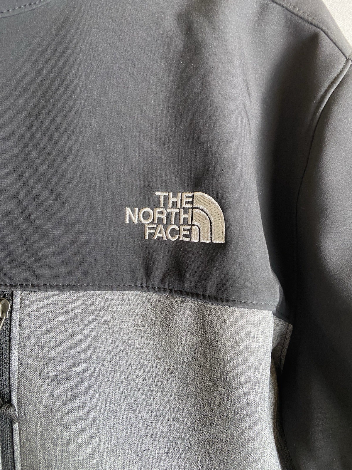 как выглядит The North Face Apex Bionic Jacket Men L Softshell Windwall Gray Black Full Zip фото