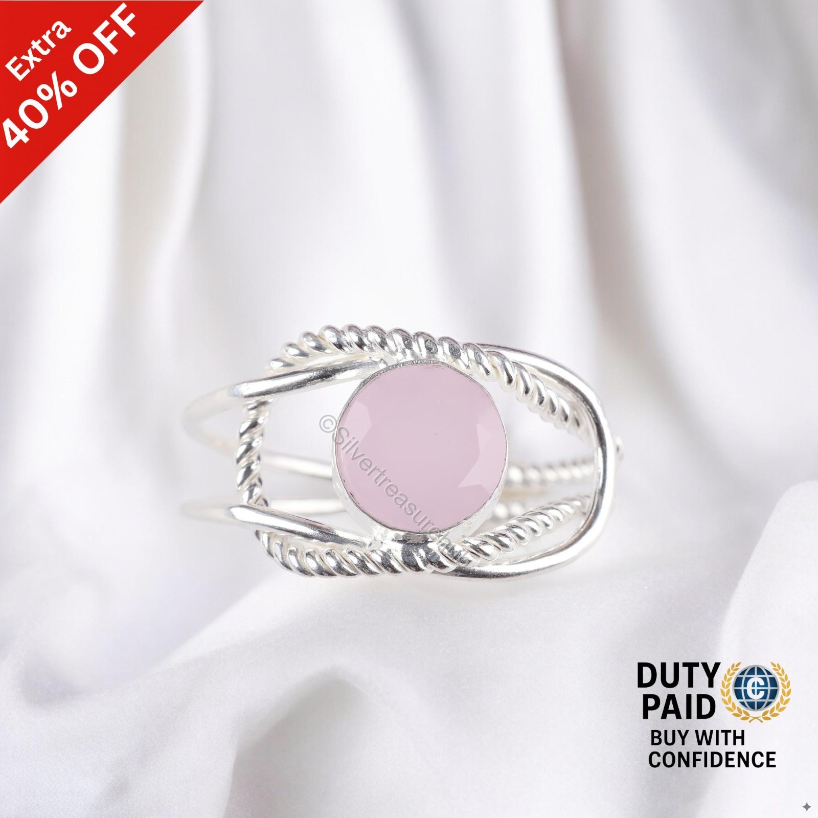 как выглядит Valentines Sale Sterling Silver Rose Chalcedony Stone Band Wedding Ring Jewelry фото