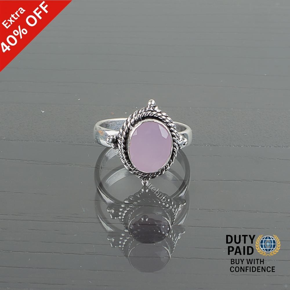 Valentines Sale 925 Sterling Silver Rose Chalcedony Stone Birthday Band New Ring