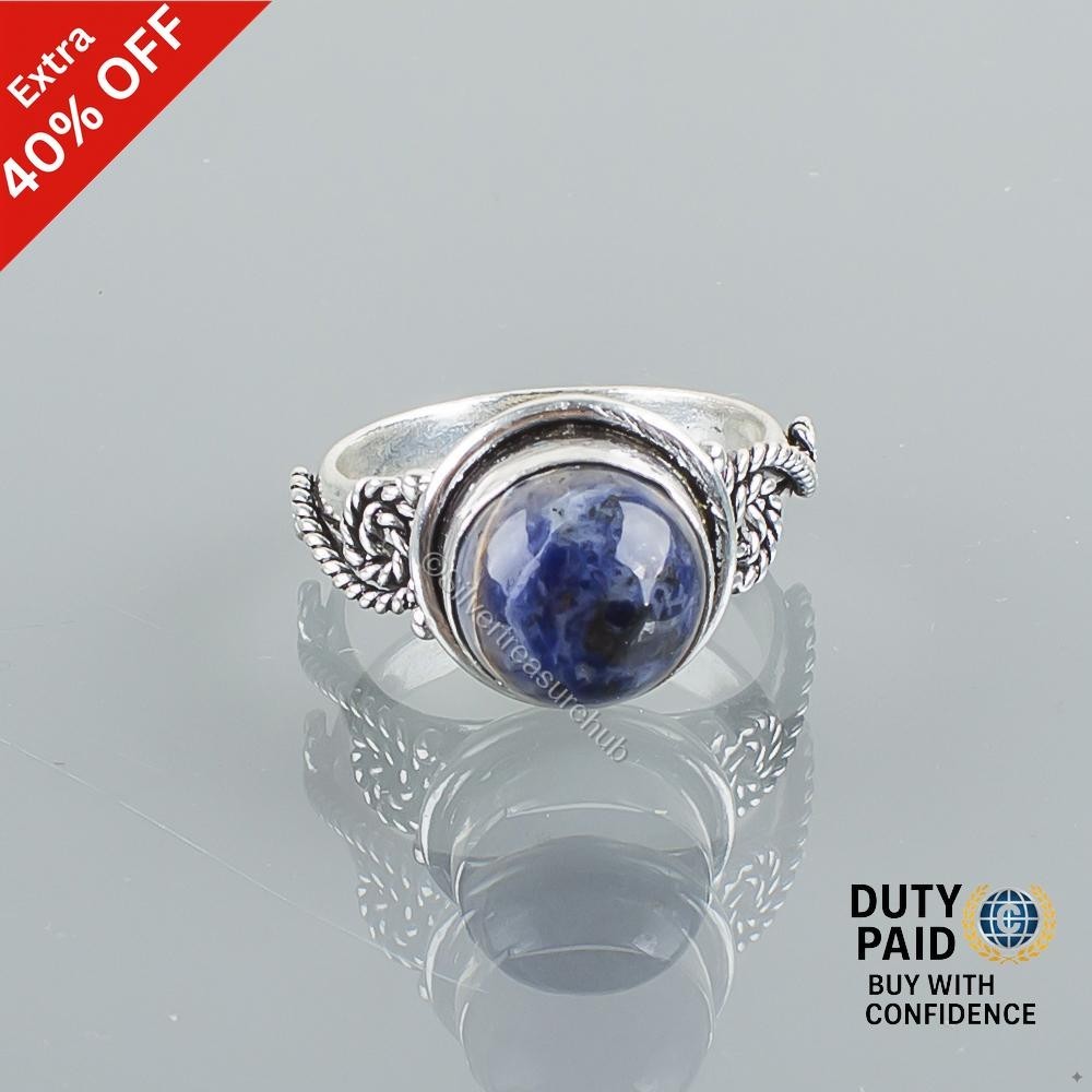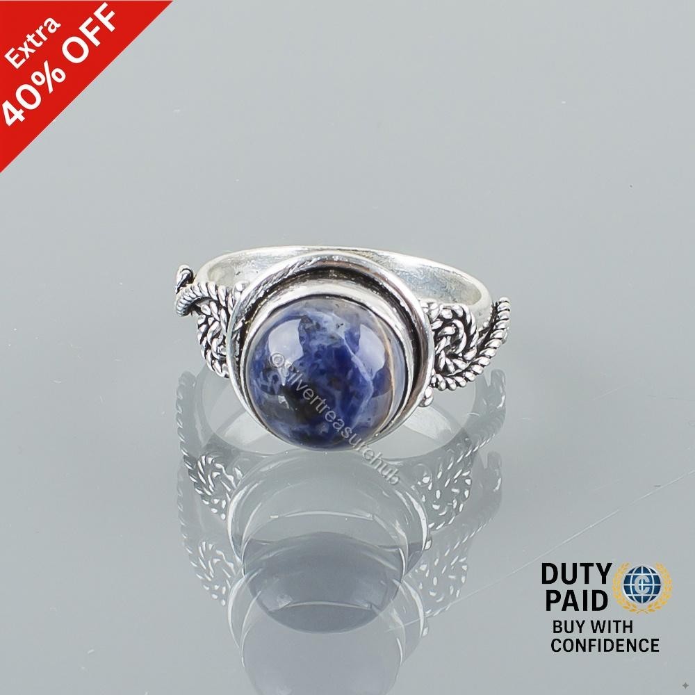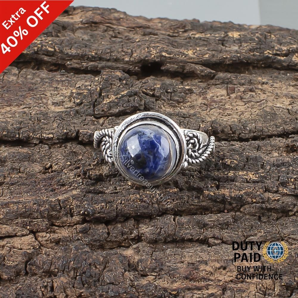 Valentines Sale Round Sodalite Gemstone Sterling Silver Band Bezel Ring Jewelry