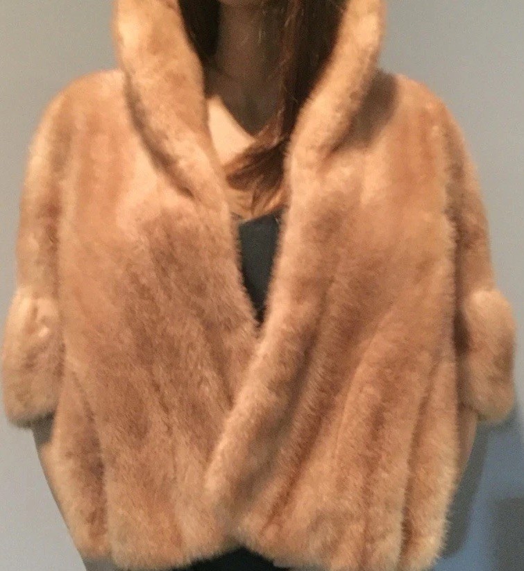 как выглядит Vintage Champagne Blond Mink Fur Stole Cape Wrap Shawl Flemington Furs фото