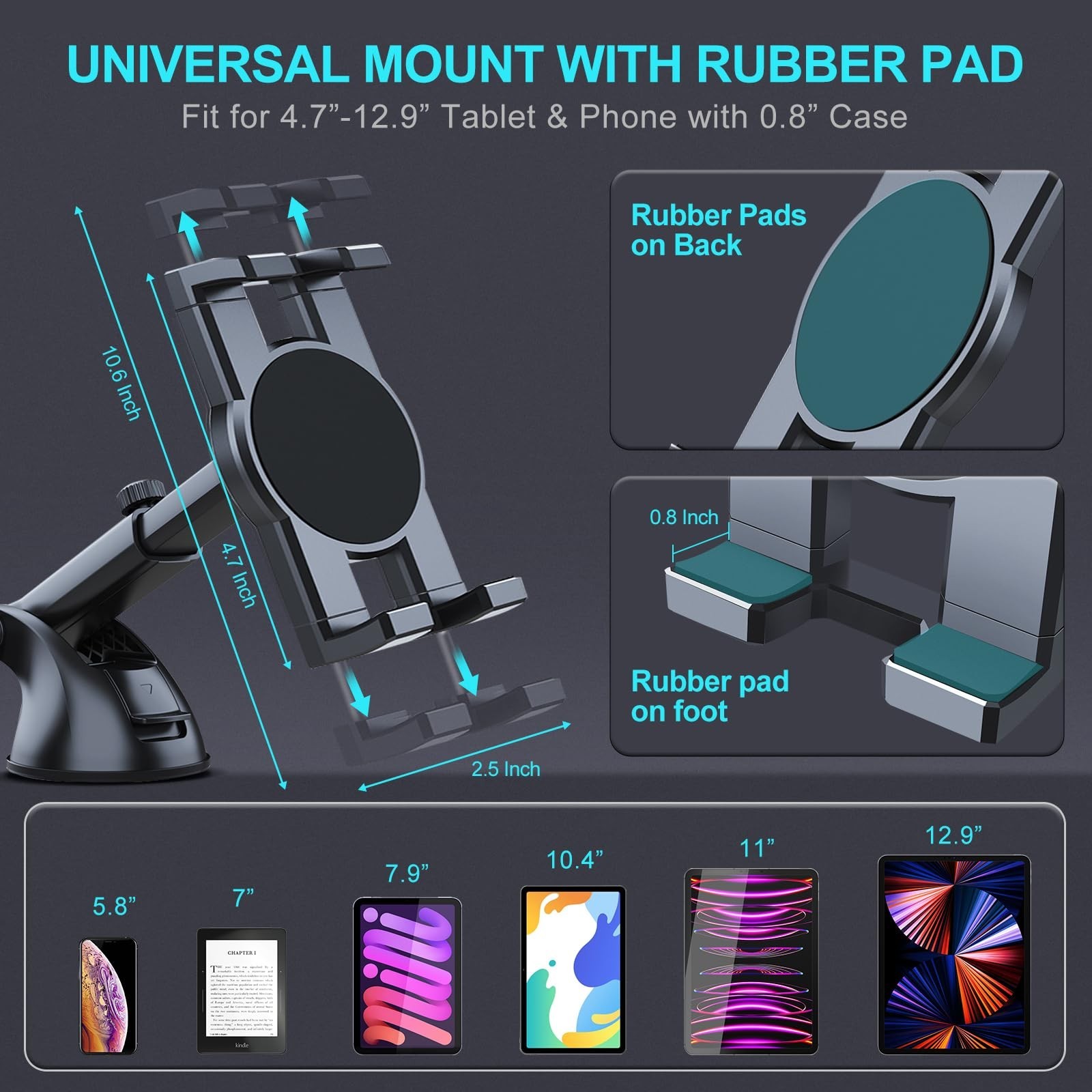 Dashboard Windshield Car Tablet Mount Holder, Suction Cup Window Dash Phone St