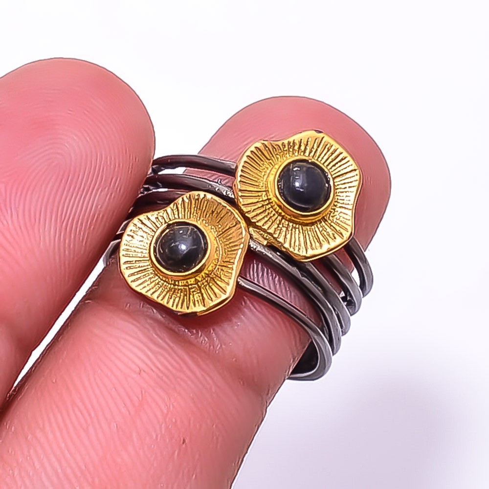 как выглядит Black Onyx - Brazil Black And Gold Plated 925 Sterling Silver Ring s.7.5 Sku3 фото