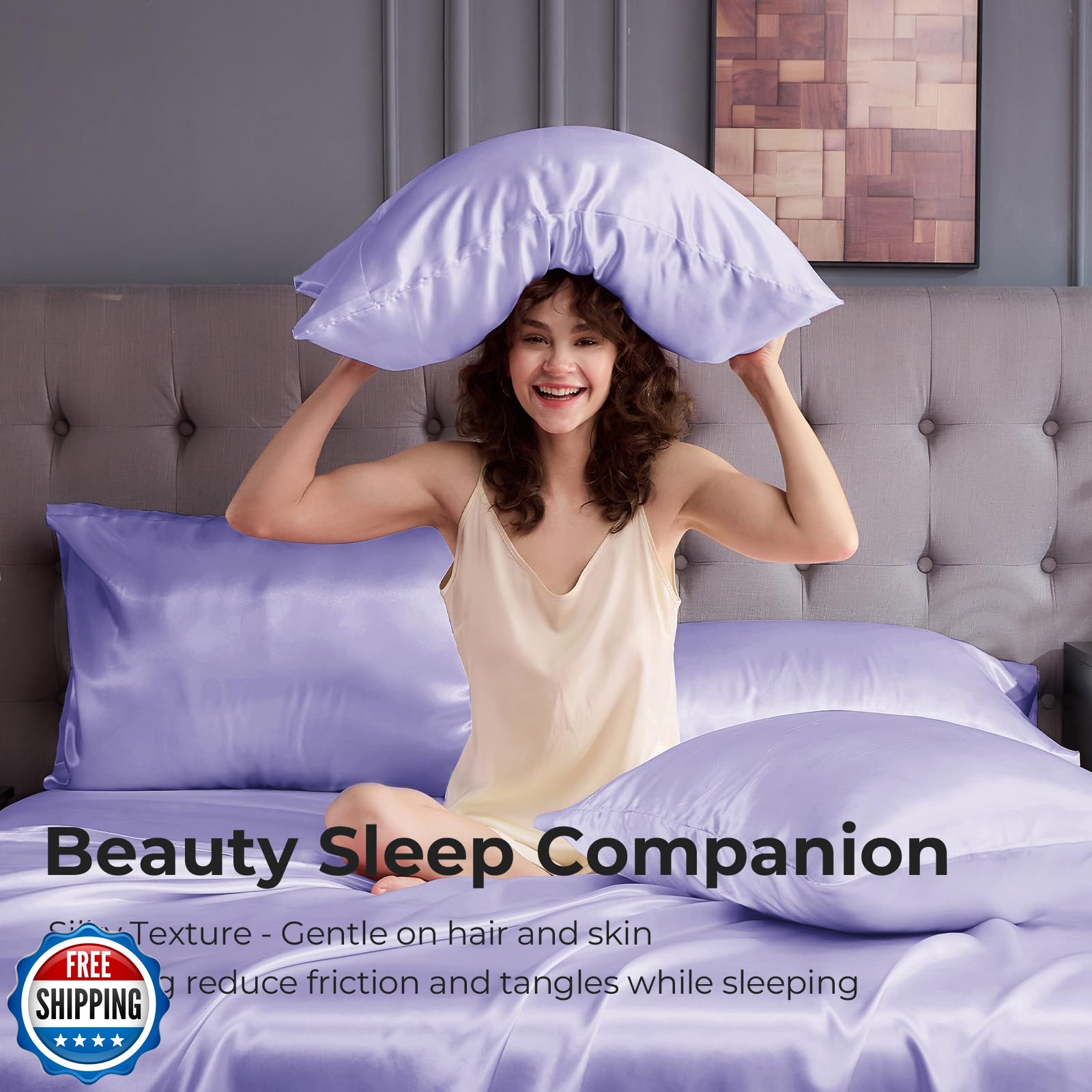 Sasttie Satin Sheets Queen Size Lavender 4 Pc Silky Set