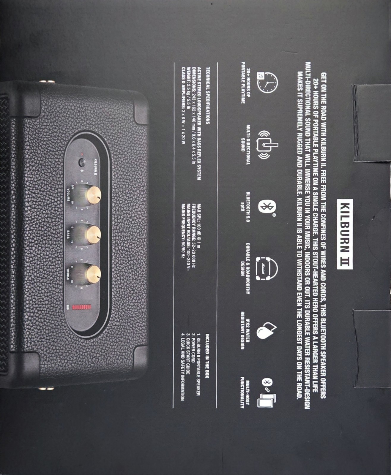 как выглядит Marshall Kilburn II 2 Wireless Portable Bluetooth Speaker 20 HR, Black and Brass фото