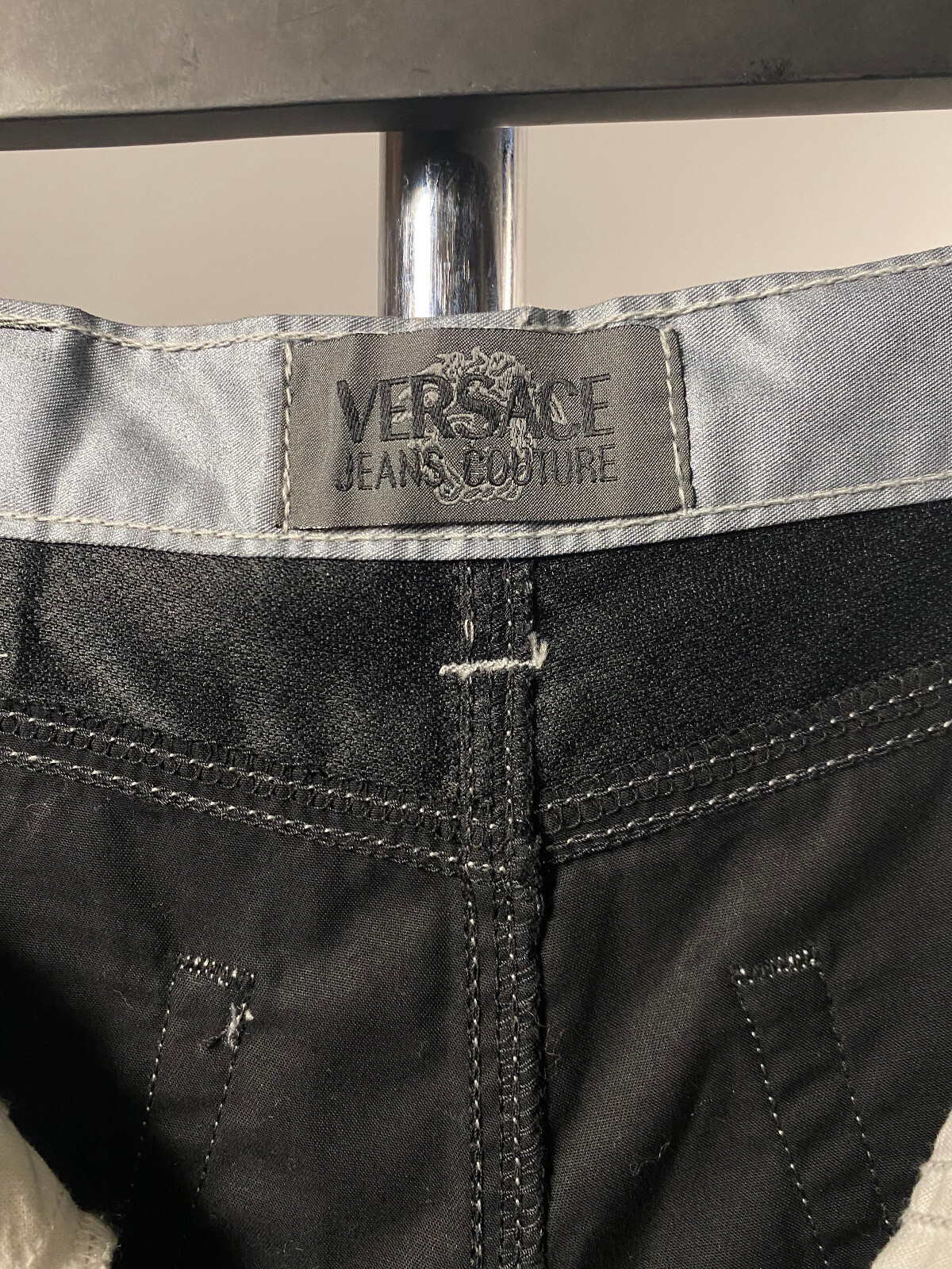 как выглядит Versace Jeans Couture Womens Silver Lurex Big Logo Trousers Pants Jeans Sz 28 42 фото