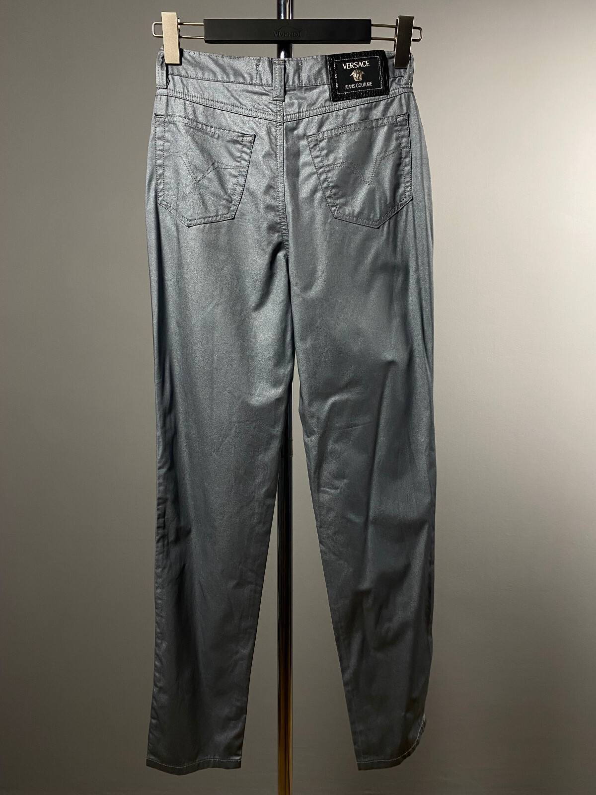 Versace Jeans Couture Womens Silver Lurex Big Logo Trousers Pants Jeans Sz 28 42